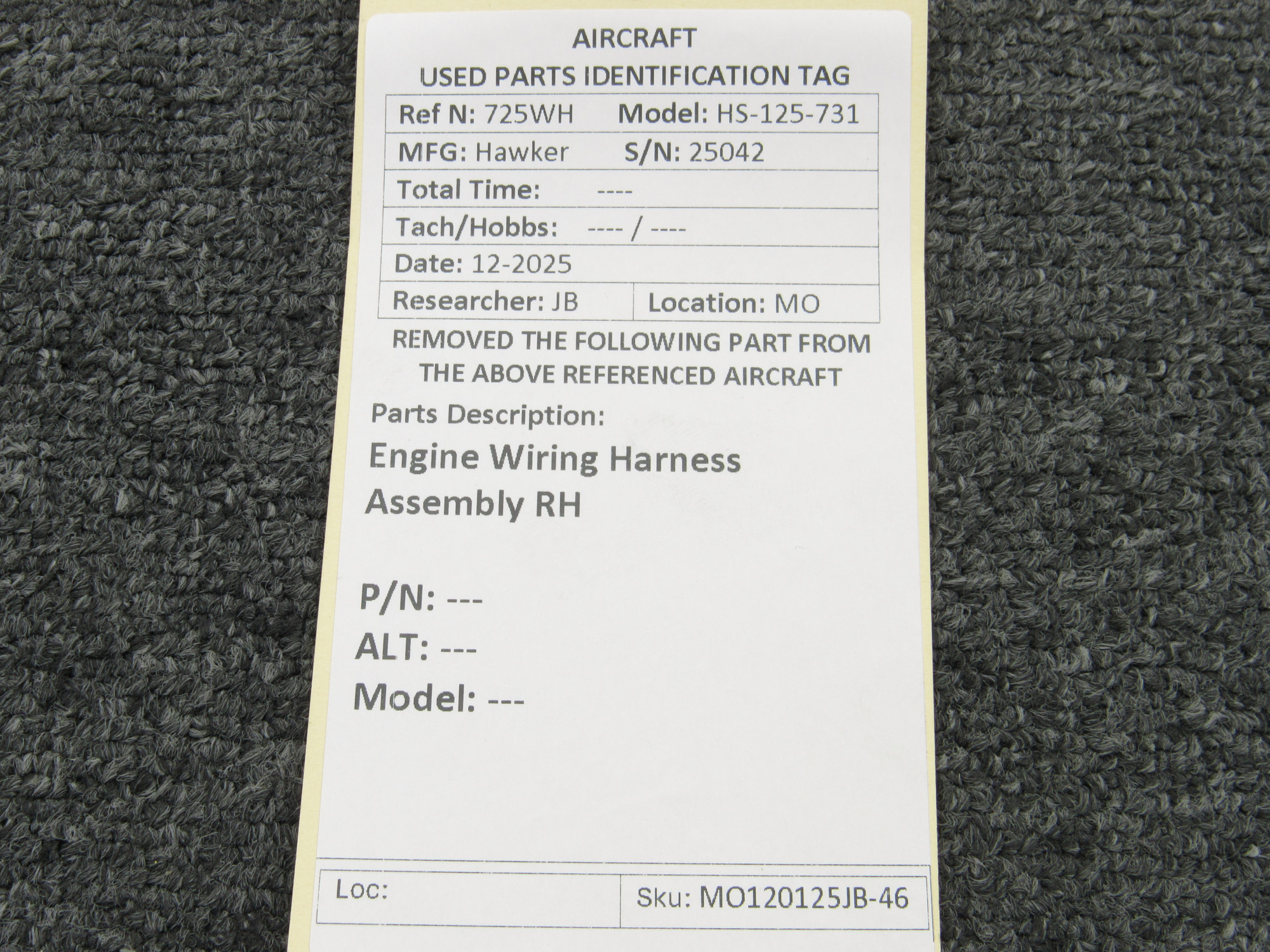 Hawker HS-125-731 Engine Wiring Harness Assembly RH