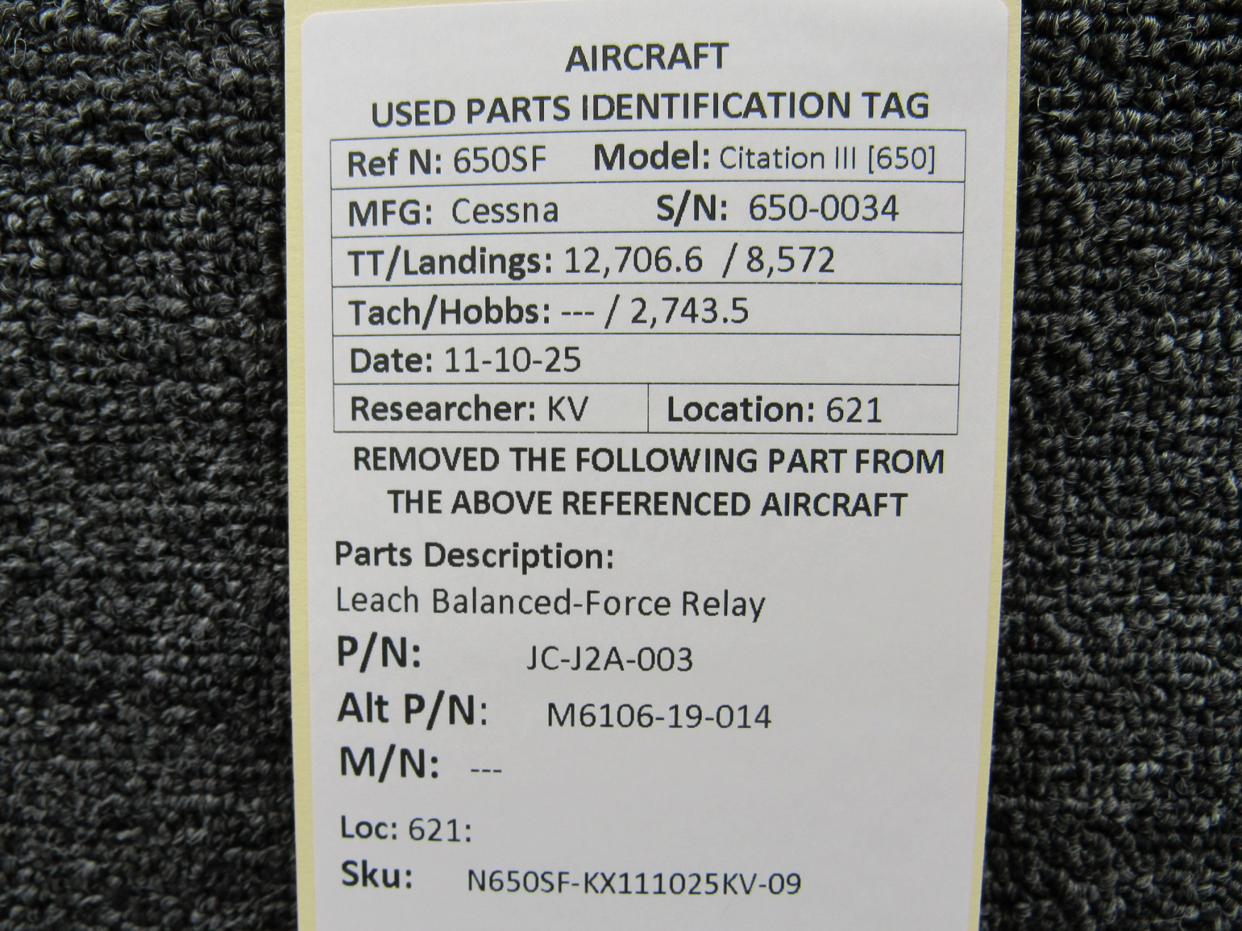 Unless specifically noted, most of our used airplane parts are sold in the condition they were removed, which means you should expect the usual signs of wear and tear.