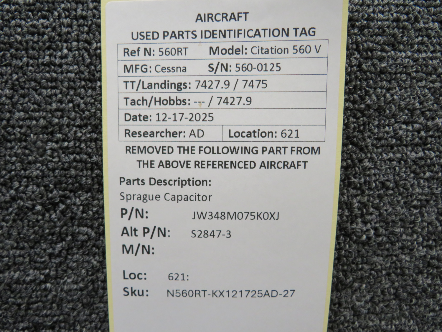 Every part is carefully inspected throughout our process and several times before it goes online. Most items are sold as-removed, just as they came off the aircraft. These parts are not functionally tested. What we do provide is clear photos, full traceability when available, pricing that reflects the as-removed condition, and a no-nonsense 90-day return window.