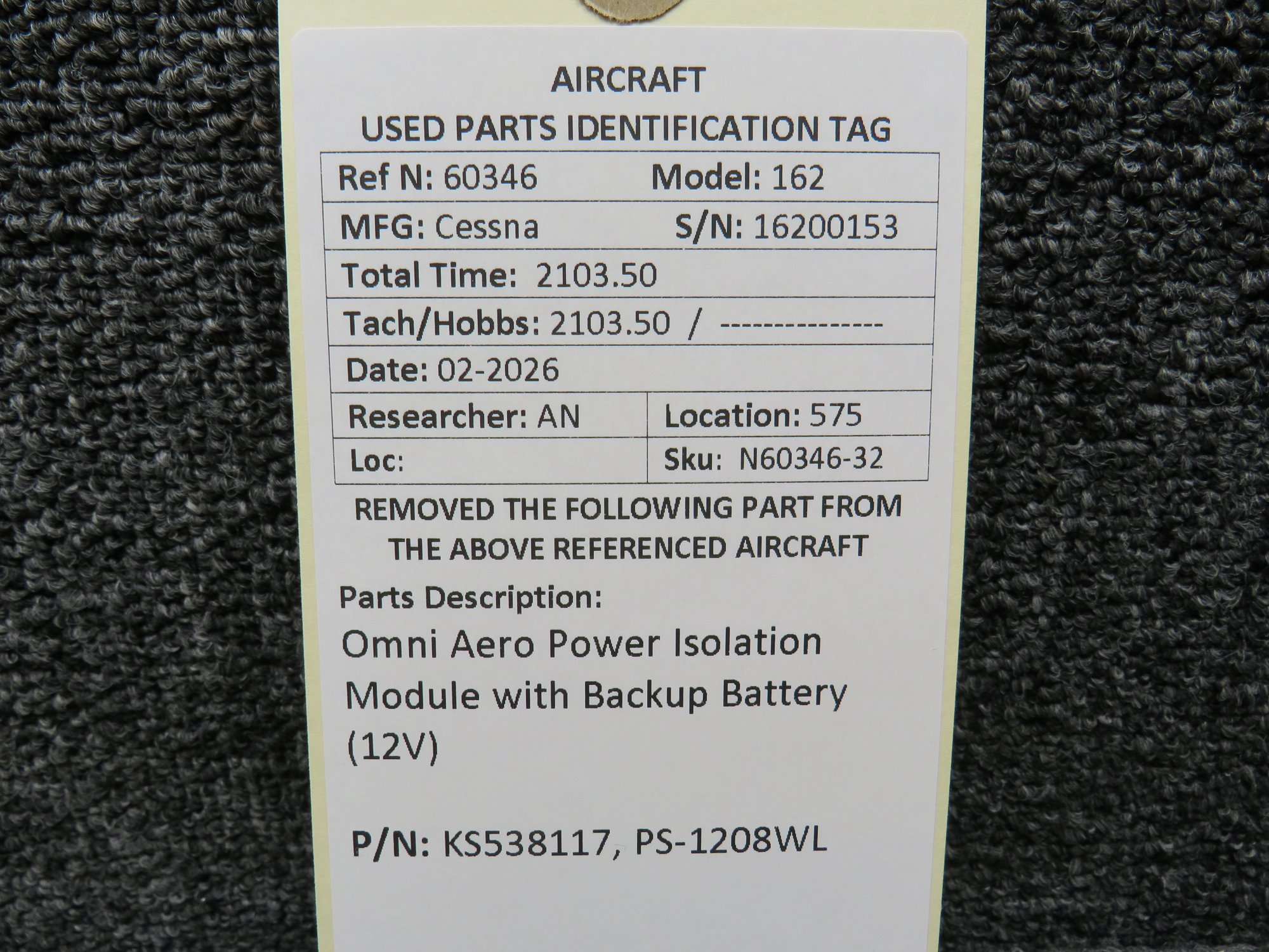 Every part is carefully inspected throughout our process and several times before it goes online. Most items are sold as-removed, just as they came off the aircraft. These parts are not functionally tested. What we do provide is clear photos, full traceability when available, pricing that reflects the as-removed condition, and a no-nonsense 90-day return window.