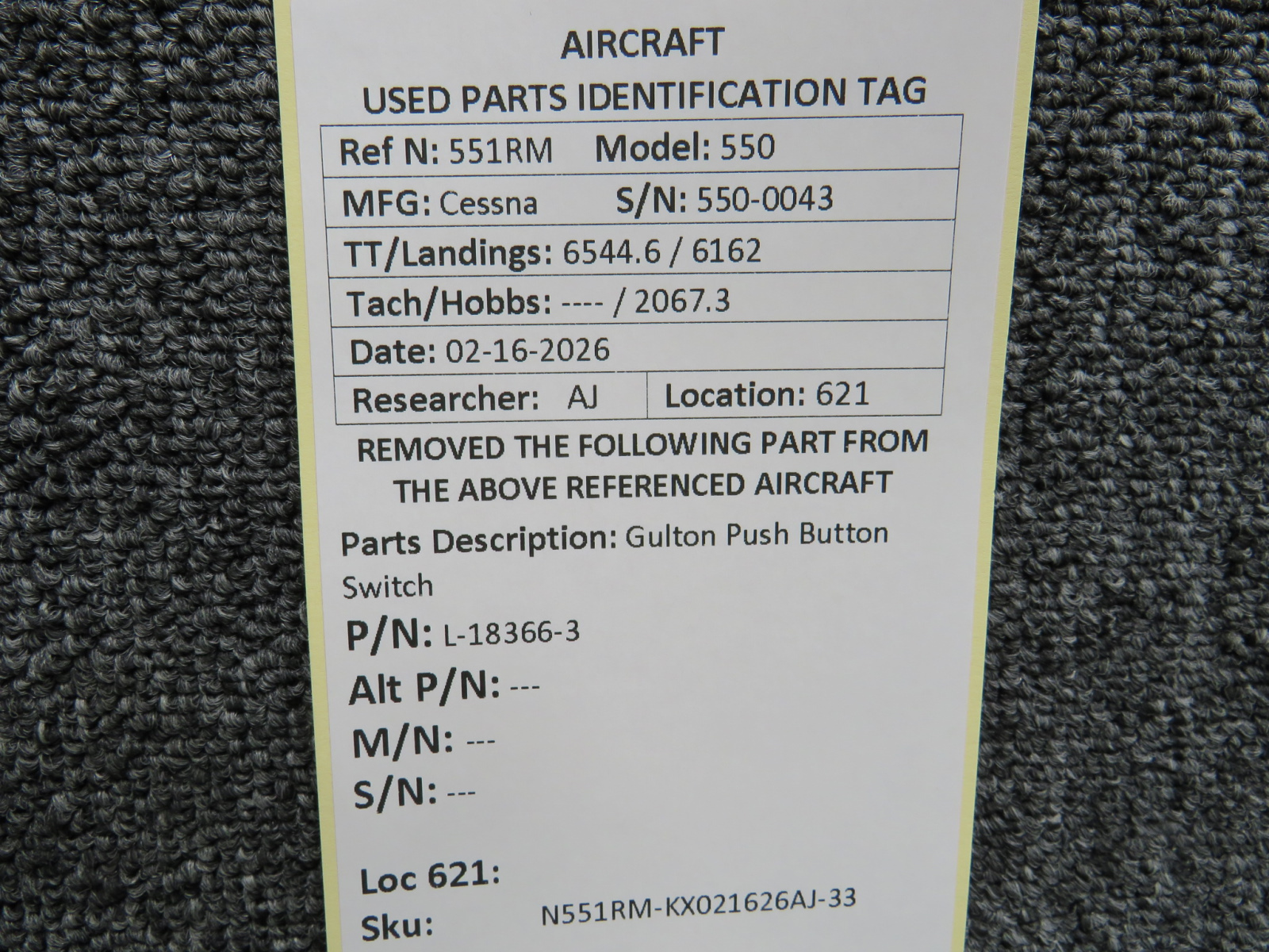 Unless specifically noted, most of our used airplane parts are sold in the condition they were removed, which means you should expect the usual signs of wear and tear.