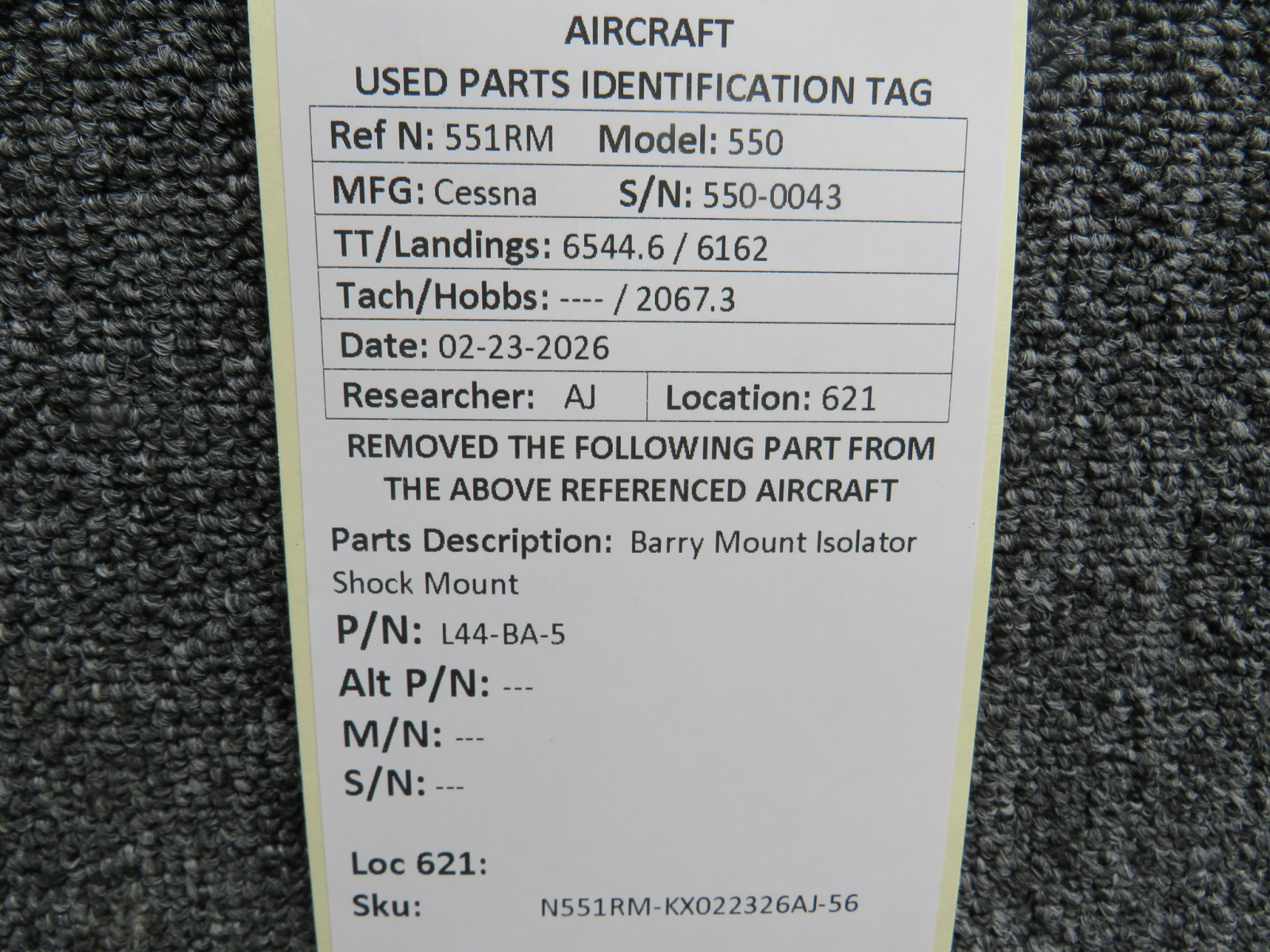 Unless specifically noted, most of our used airplane parts are sold in the condition they were removed, which means you should expect the usual signs of wear and tear.