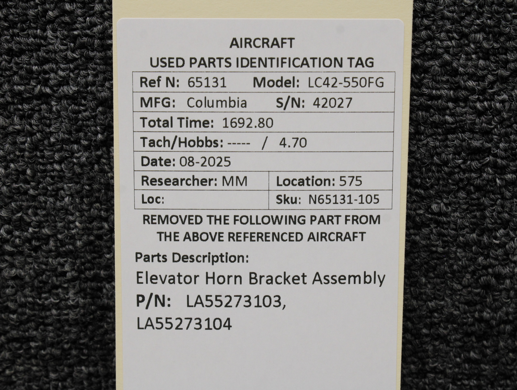 Unless specifically noted, most of our used airplane parts are sold in the condition they were removed, which means you should expect the usual signs of wear and tear.
