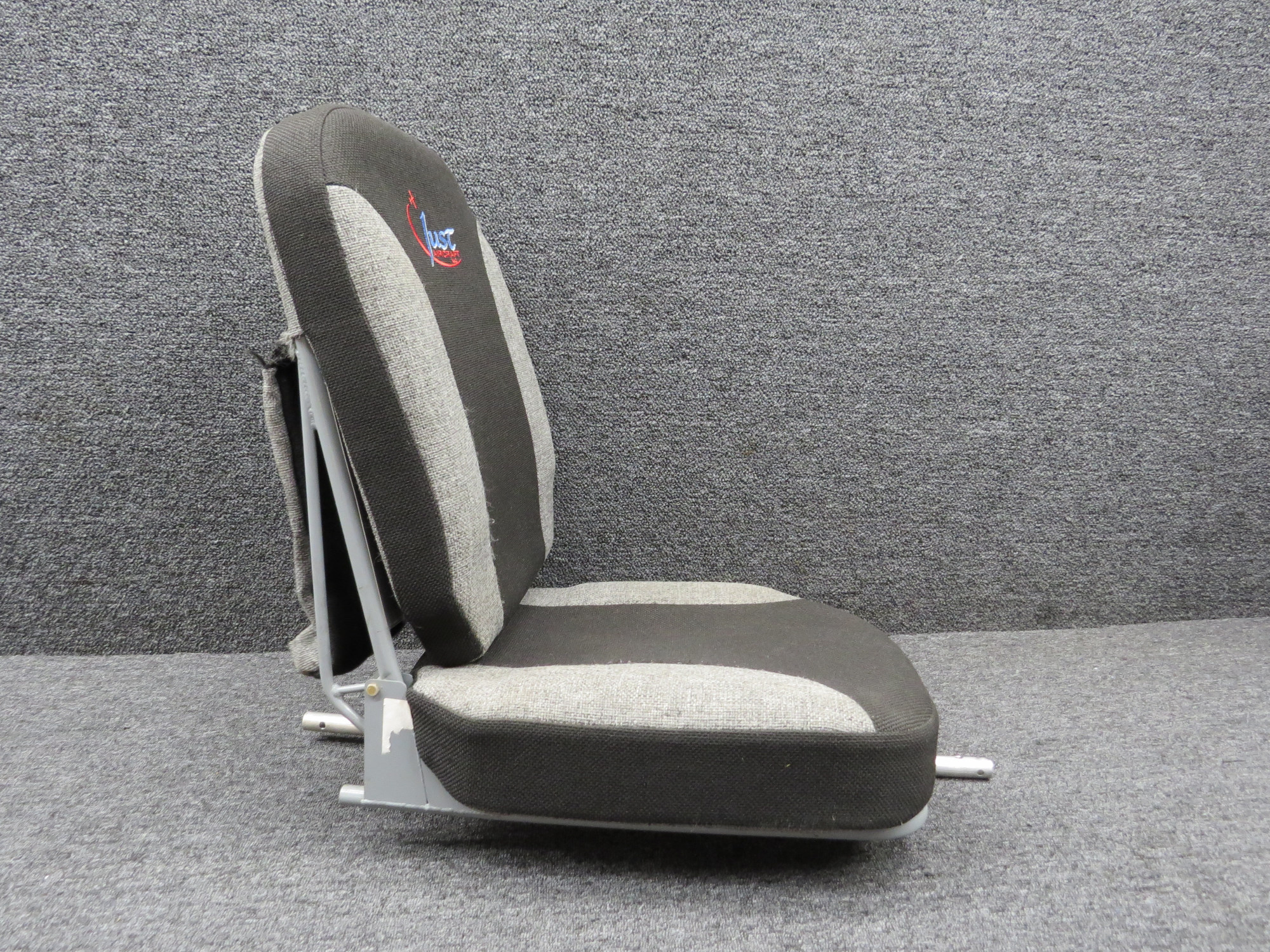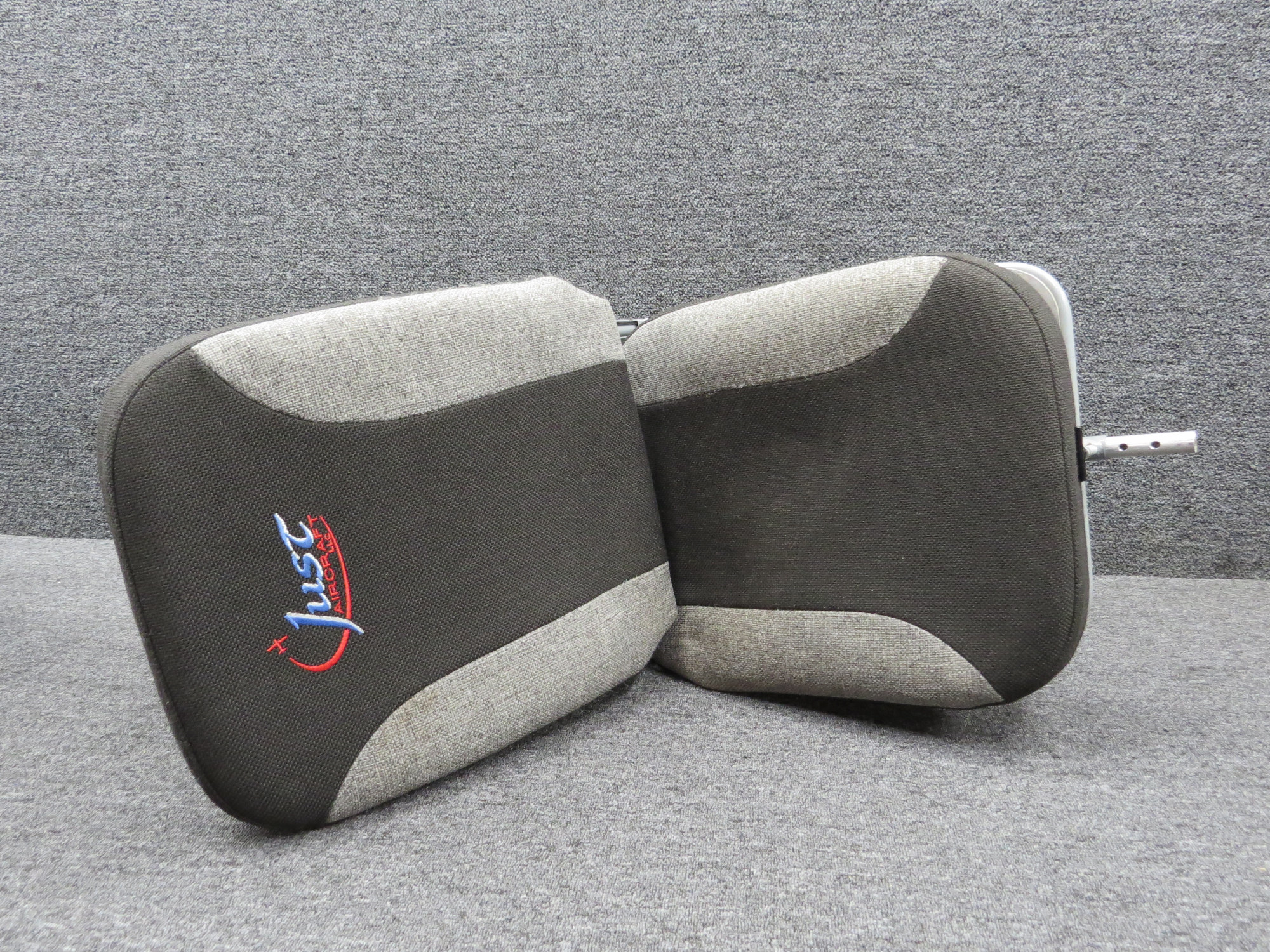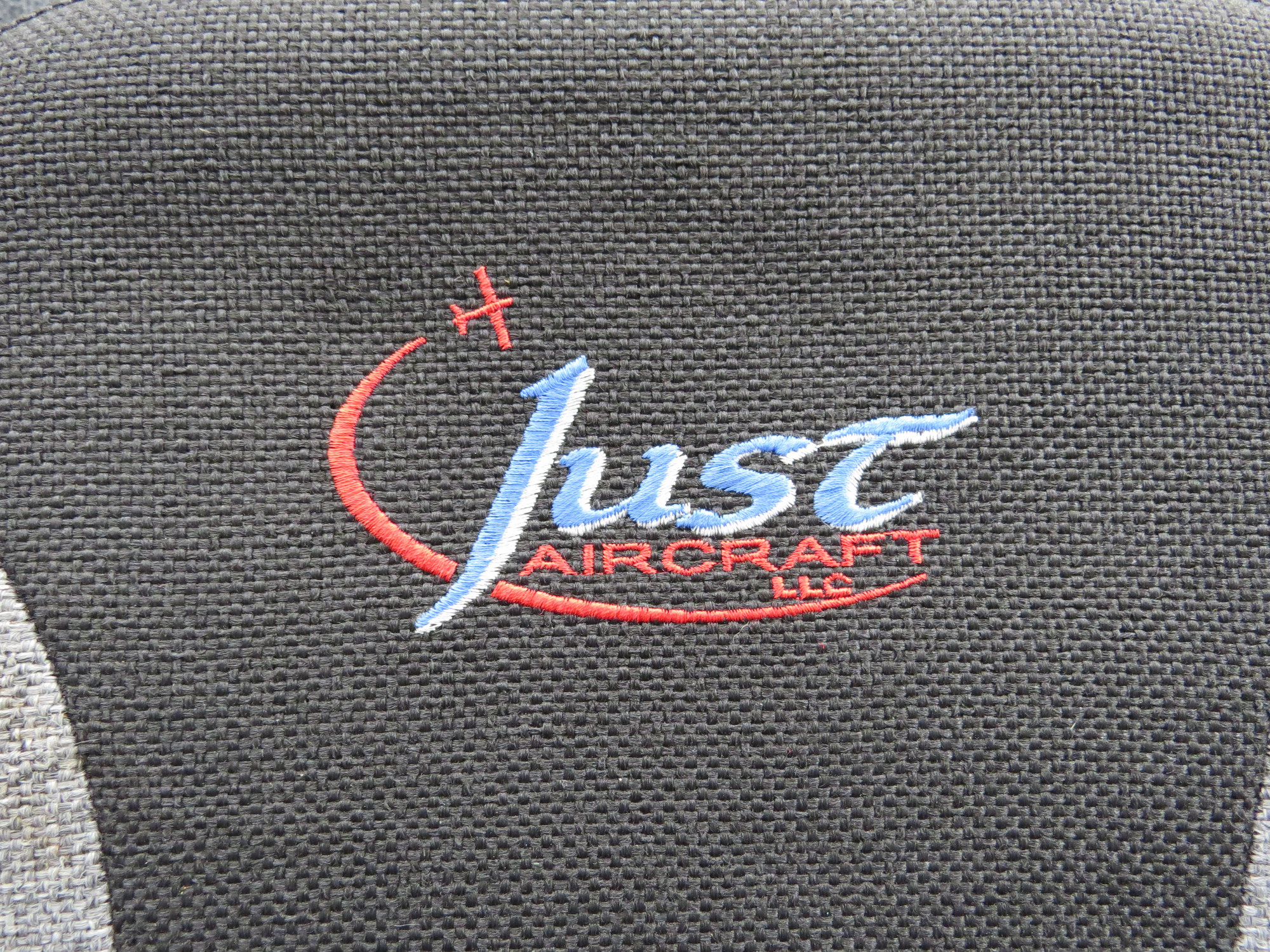 - Color: black and gray fabric with embroidered lettering