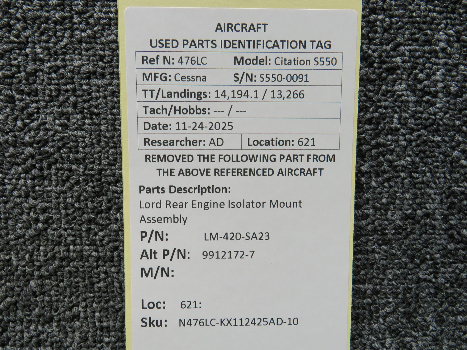 Unless specifically noted, most of our used airplane parts are sold in the condition they were removed, which means you should expect the usual signs of wear and tear.