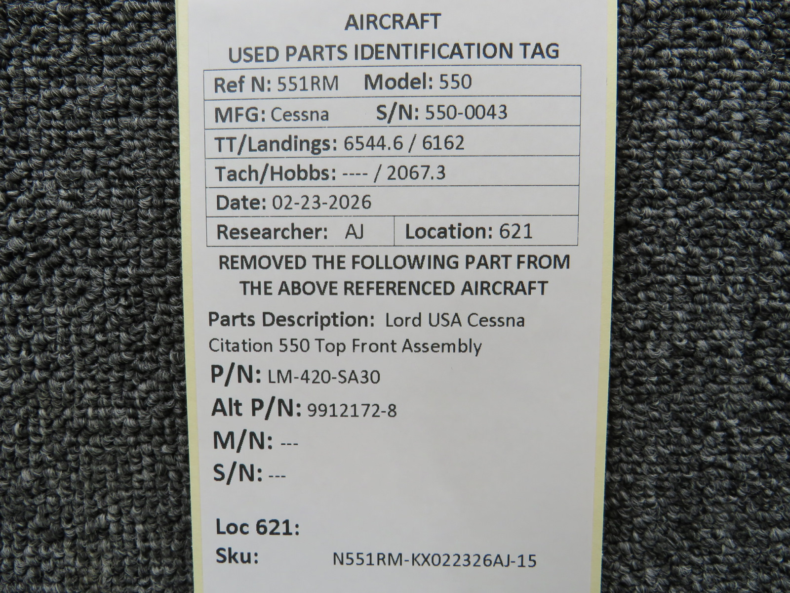 Unless specifically noted, most of our used airplane parts are sold in the condition they were removed, which means you should expect the usual signs of wear and tear.
