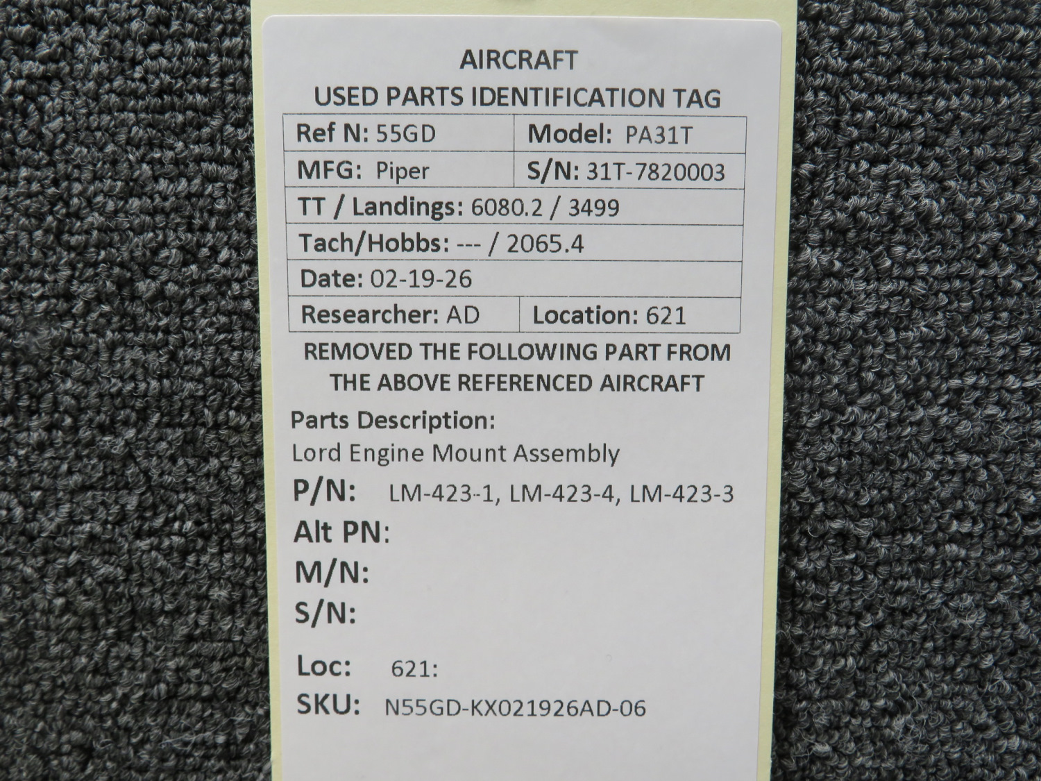 - Part Number: Engine Mount Part Number: LM-423-1