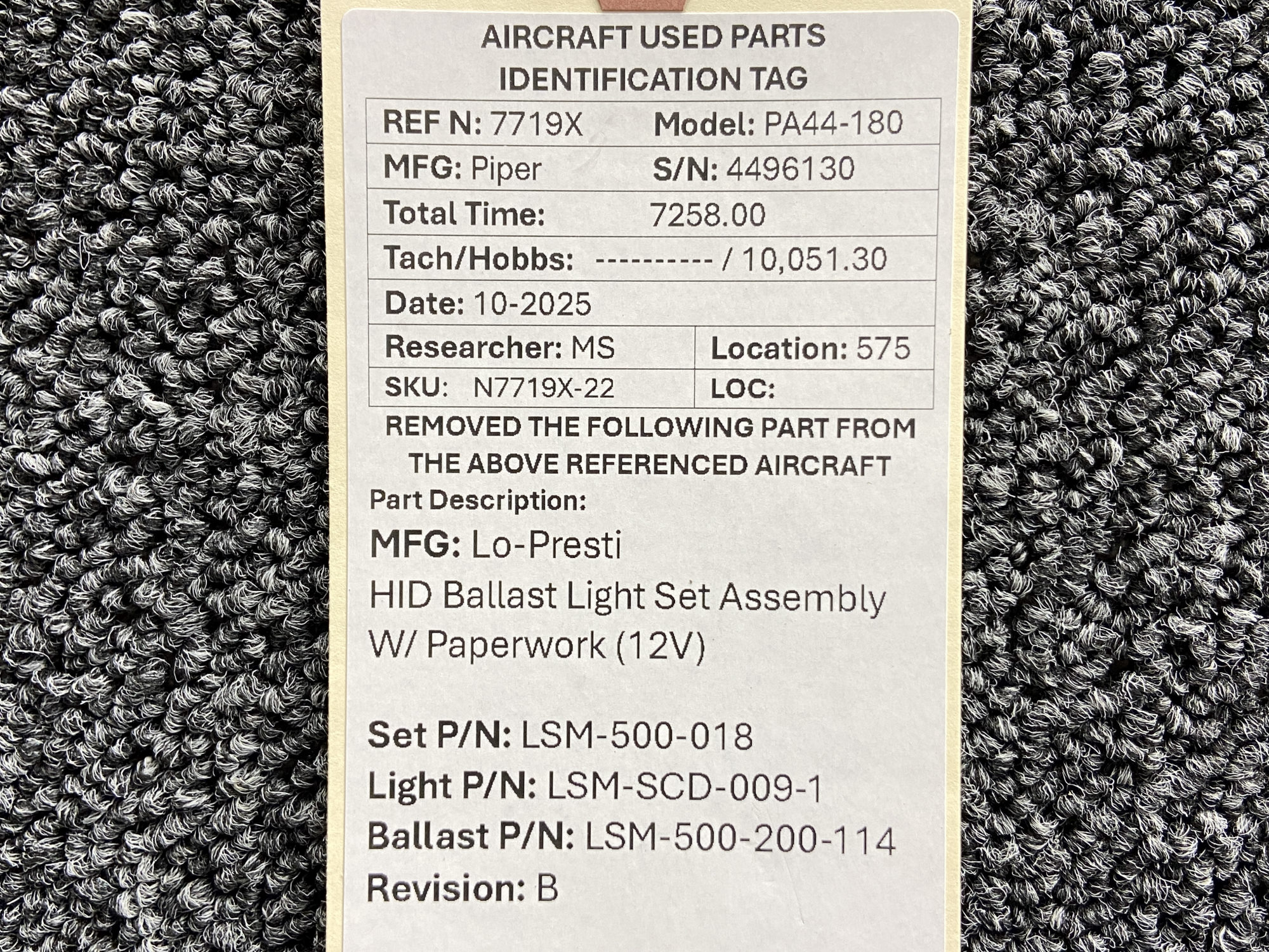 - Ballast Part Number: LSM-500-200-114 (X2)