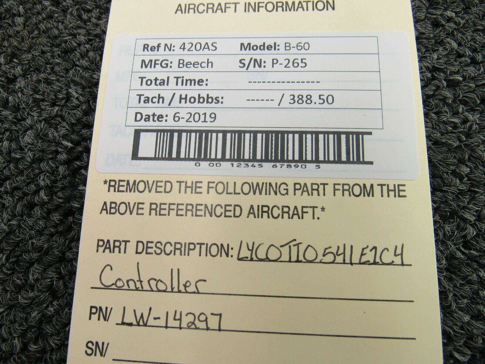 LW-14297 Beech B60 Lycoming TIO-541-E1C4 Controller