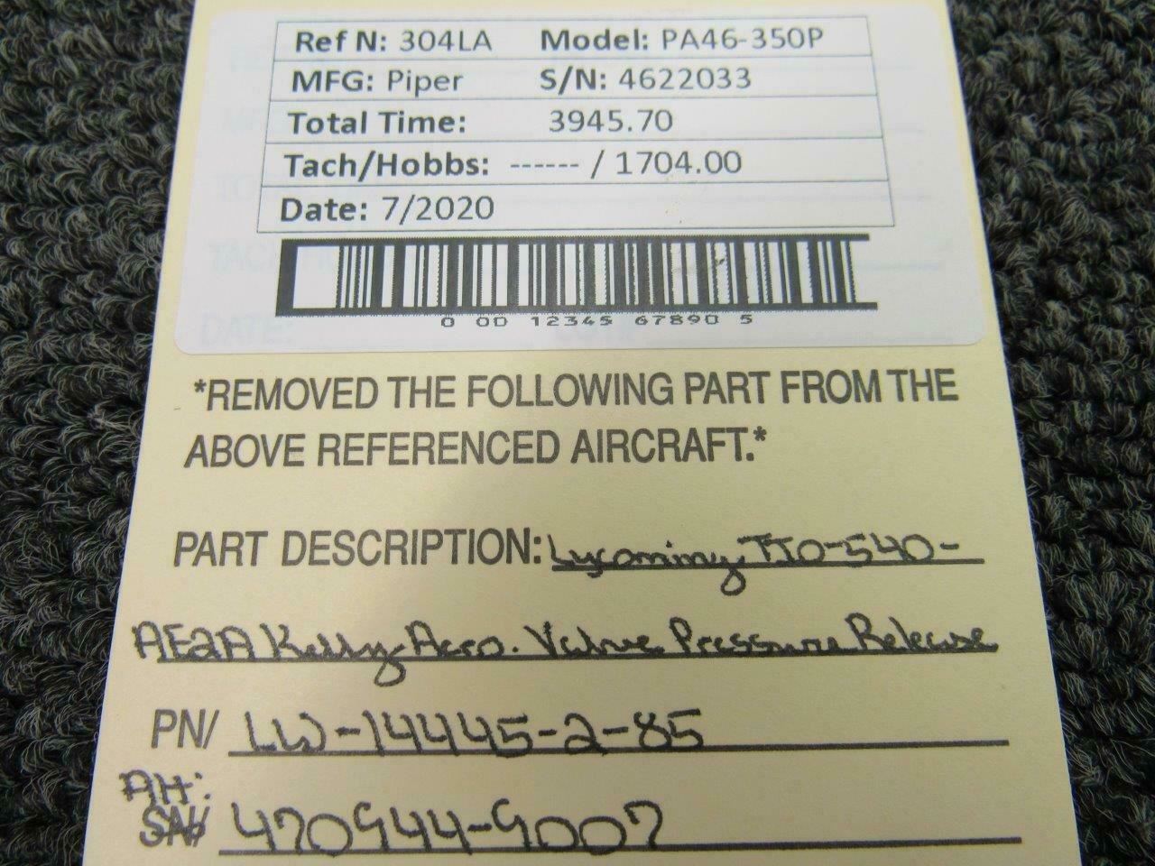LW-14445-2-85 (Alt: 470944-9007) Lycoming TIO-540-AE2A Turbo Blow Off Valve Assy