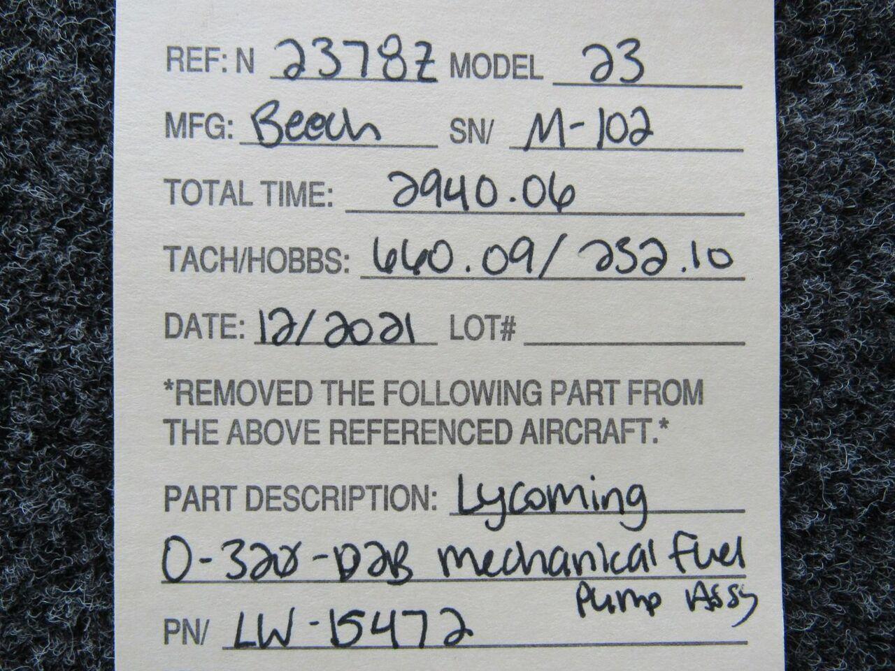 - Removed From: Lycoming O-320-D2B