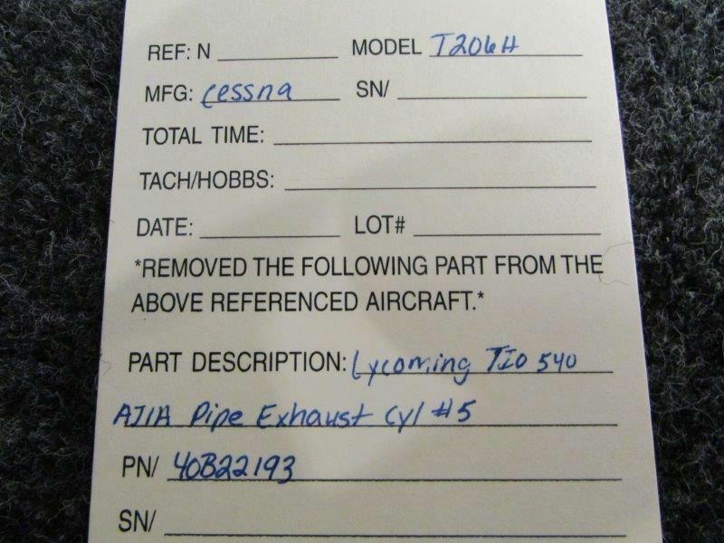 Lycoming TIO 540-AJ1A Pipe Exhaust Cyl #5 P/N 40B22193