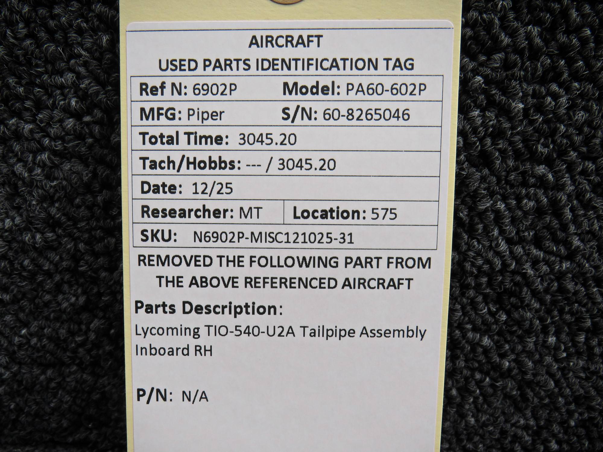 - Removed From: Lycoming TIO-540-U2A