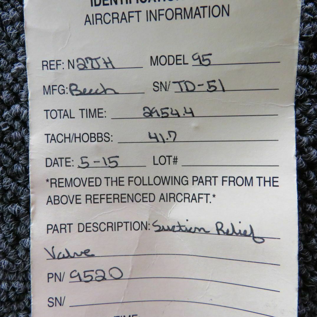 M/N 9520 Beech B95 Suction Relief Valve