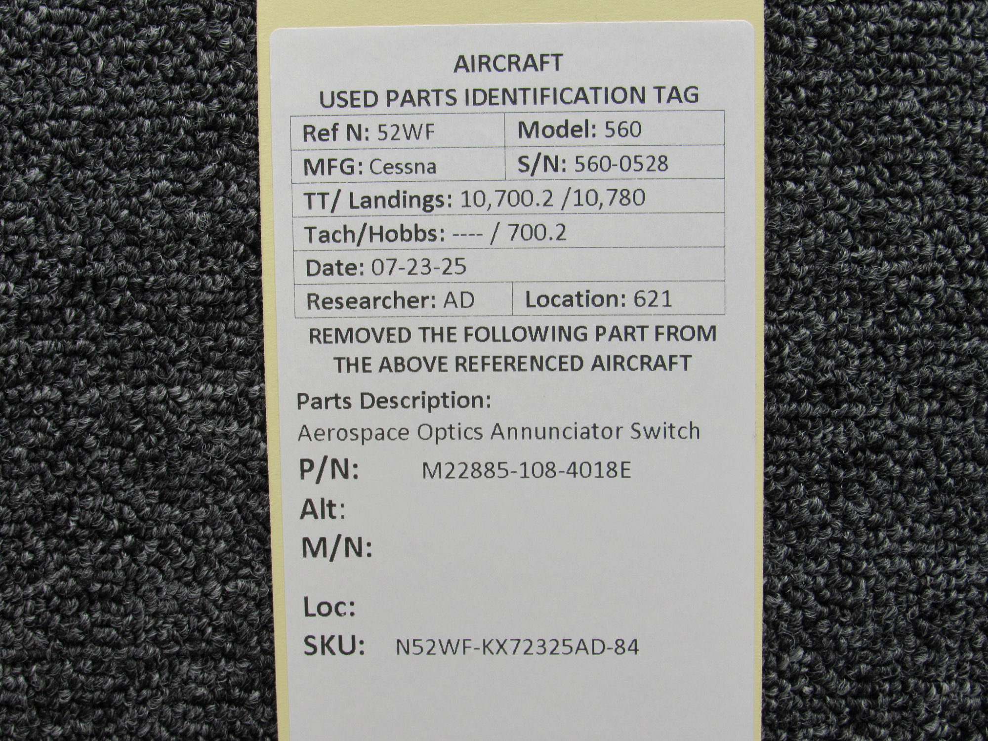 Every part is carefully inspected throughout our process and several times before it goes online. Most items are sold as-removed, just as they came off the aircraft. These parts are not functionally tested. What we do provide is clear photos, full traceability when available, pricing that reflects the as-removed condition, and a no-nonsense 90-day return window.