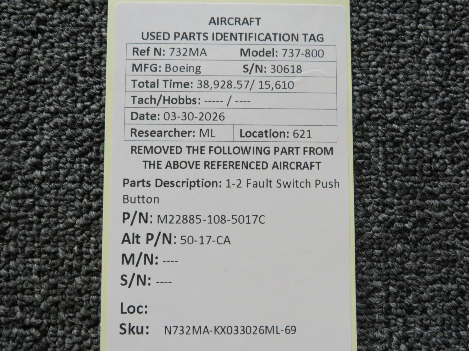 Every part is carefully inspected throughout our process and several times before it goes online. Most items are sold as-removed, just as they came off the aircraft. These parts are not functionally tested. What we do provide is clear photos, full traceability when available, pricing that reflects the as-removed condition, and a no-nonsense 90-day return window.