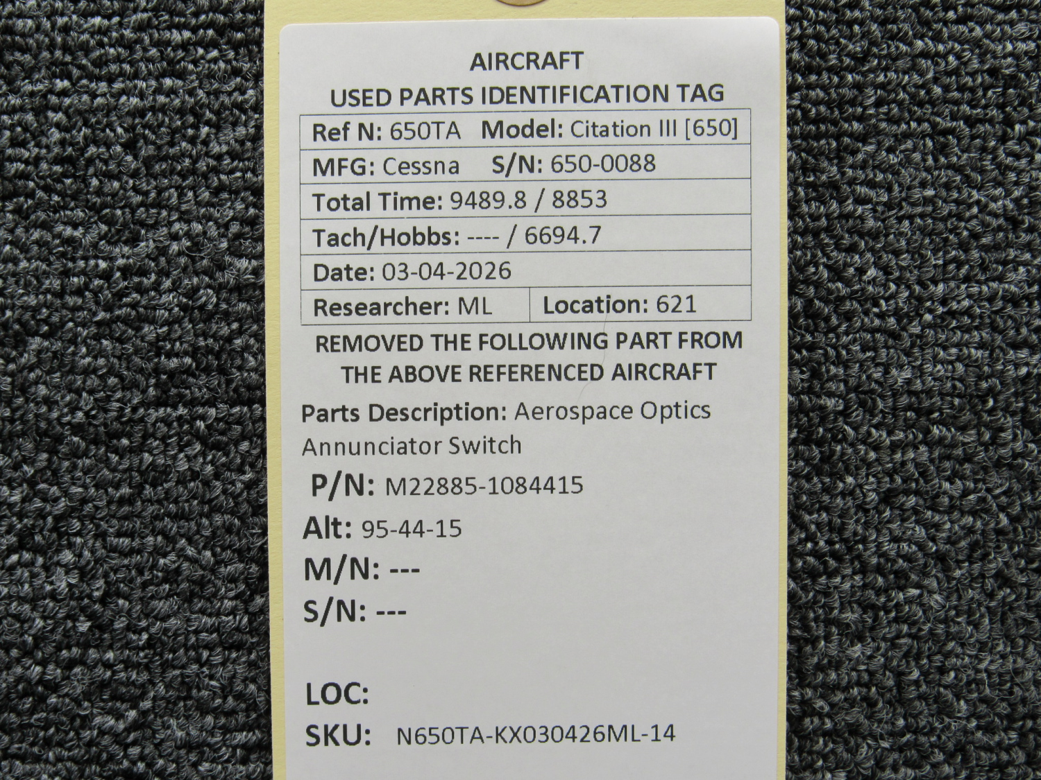 Every part is carefully inspected throughout our process and several times before it goes online. Most items are sold as-removed, just as they came off the aircraft. These parts are not functionally tested. What we do provide is clear photos, full traceability when available, pricing that reflects the as-removed condition, and a no-nonsense 90-day return window.