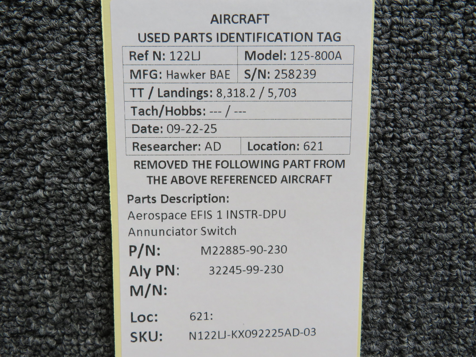 Every part is carefully inspected throughout our process and several times before it goes online. Most items are sold as-removed, just as they came off the aircraft. These parts are not functionally tested. What we do provide is clear photos, full traceability when available, pricing that reflects the as-removed condition, and a no-nonsense 90-day return window.
