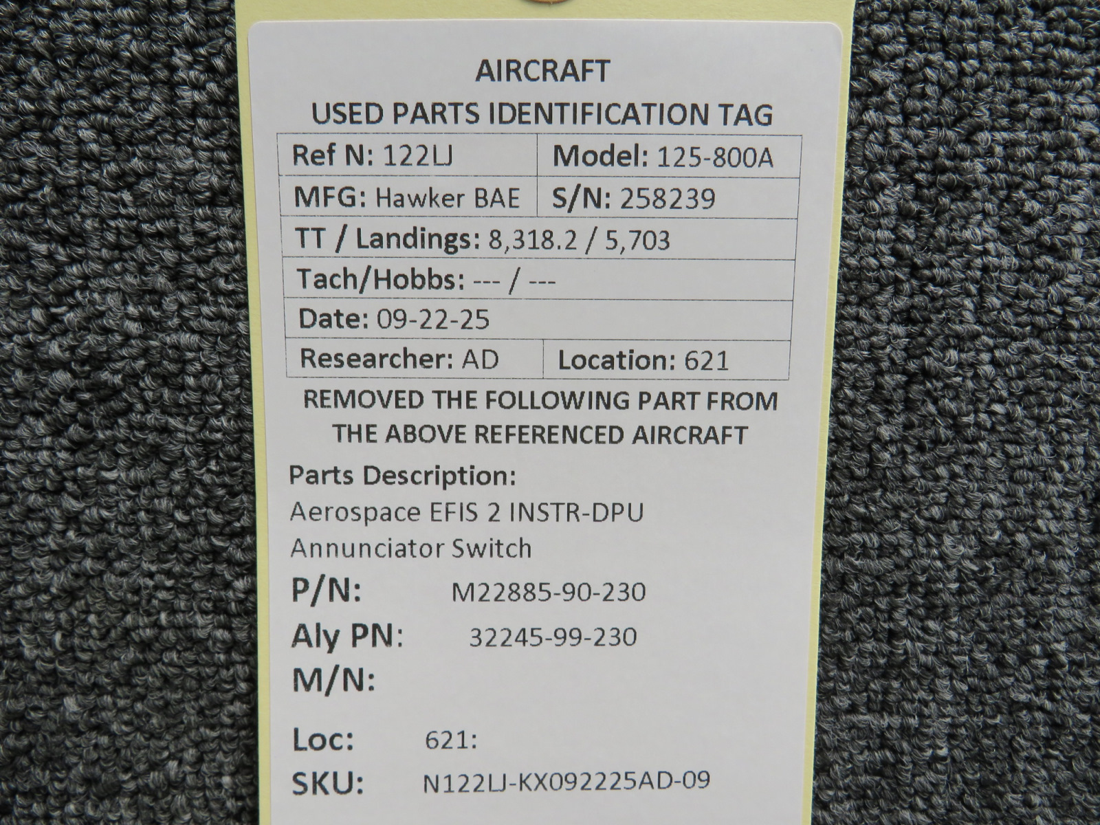 Unless specifically noted, most of our used airplane parts are sold in the condition they were removed, which means you should expect the usual signs of wear and tear.