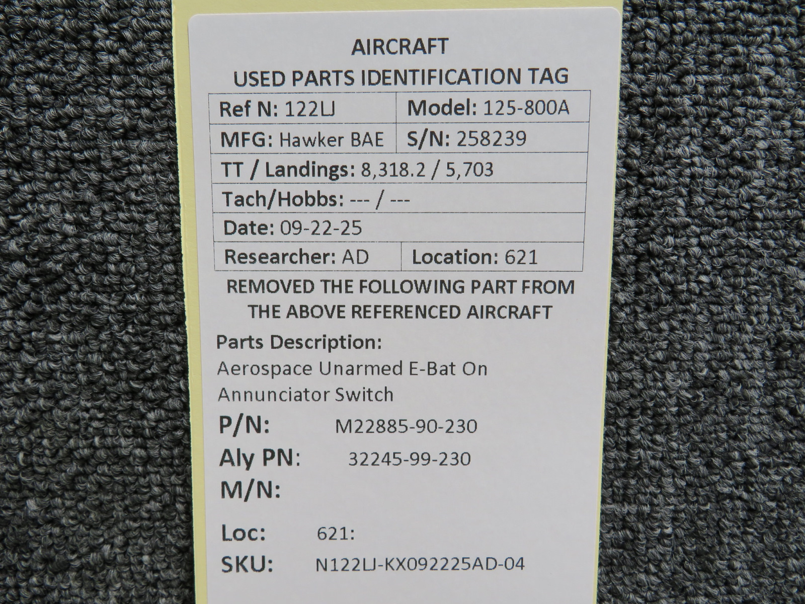 Unless specifically noted, most of our used airplane parts are sold in the condition they were removed, which means you should expect the usual signs of wear and tear.