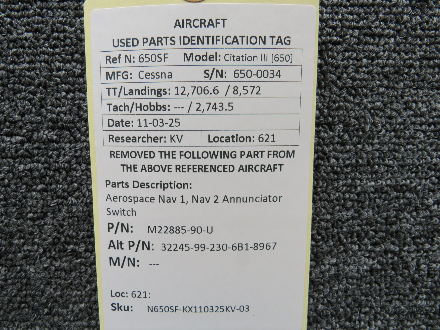 Unless specifically noted, most of our used airplane parts are sold in the condition they were removed, which means you should expect the usual signs of wear and tear.