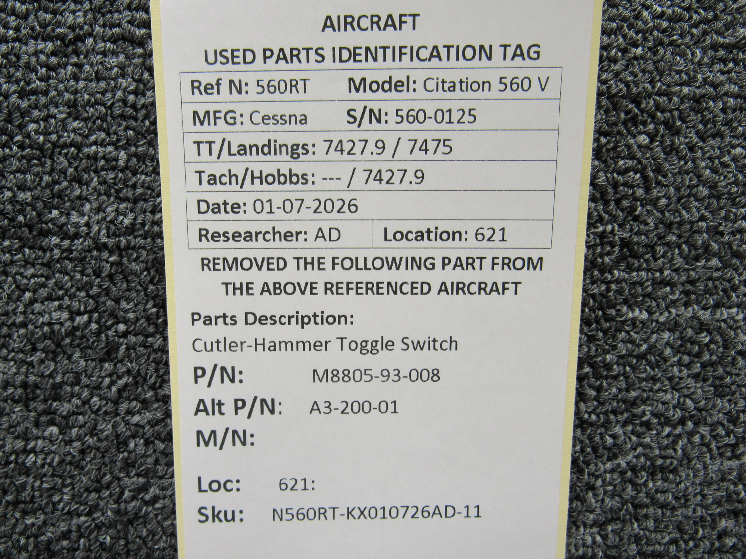 Unless specifically noted, most of our used airplane parts are sold in the condition they were removed, which means you should expect the usual signs of wear and tear.