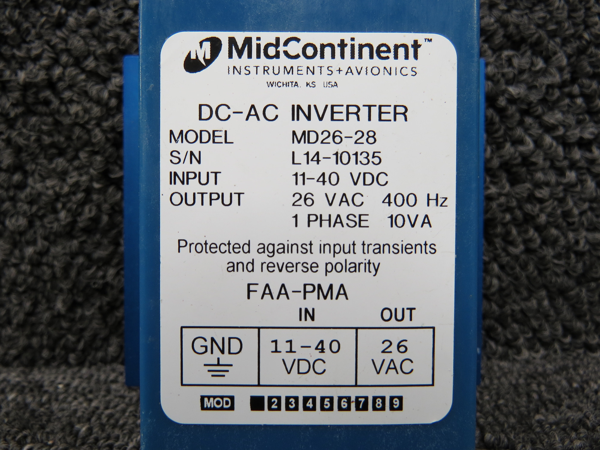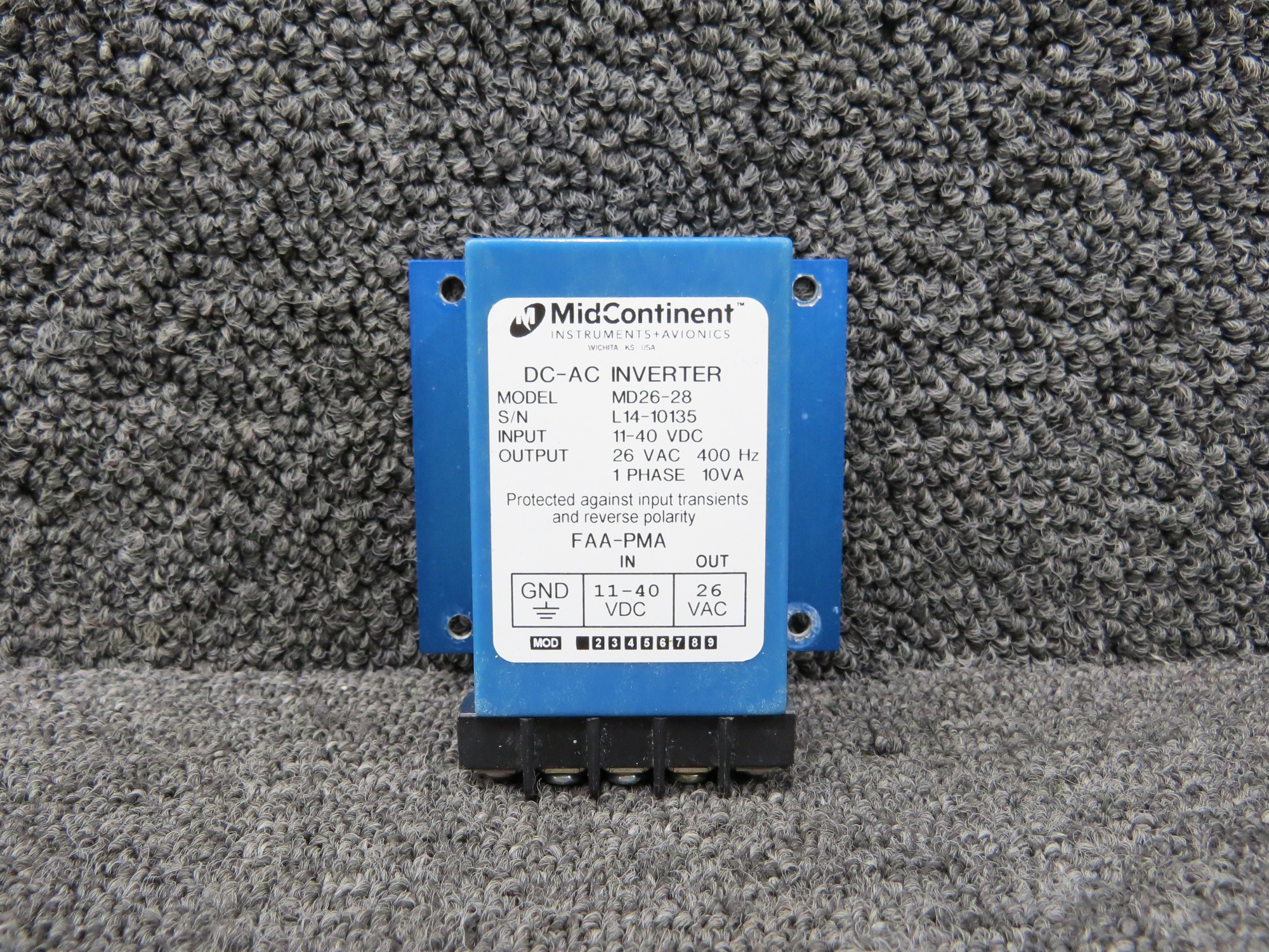 - Output: 26 VAC, 400Hz, 1 Phase, 10VA