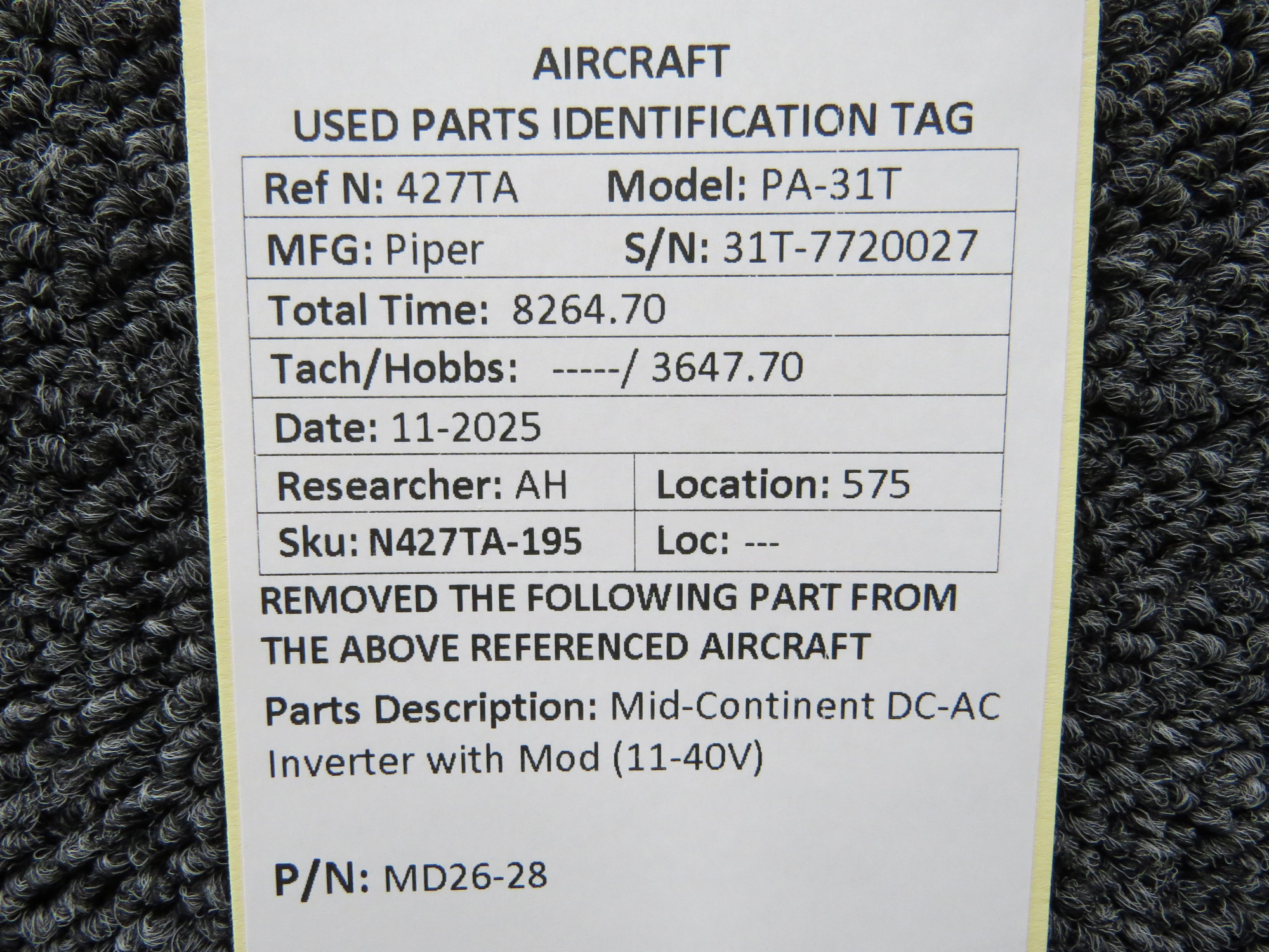 Unless specifically noted, most of our used airplane parts are sold in the condition they were removed, which means you should expect the usual signs of wear and tear.