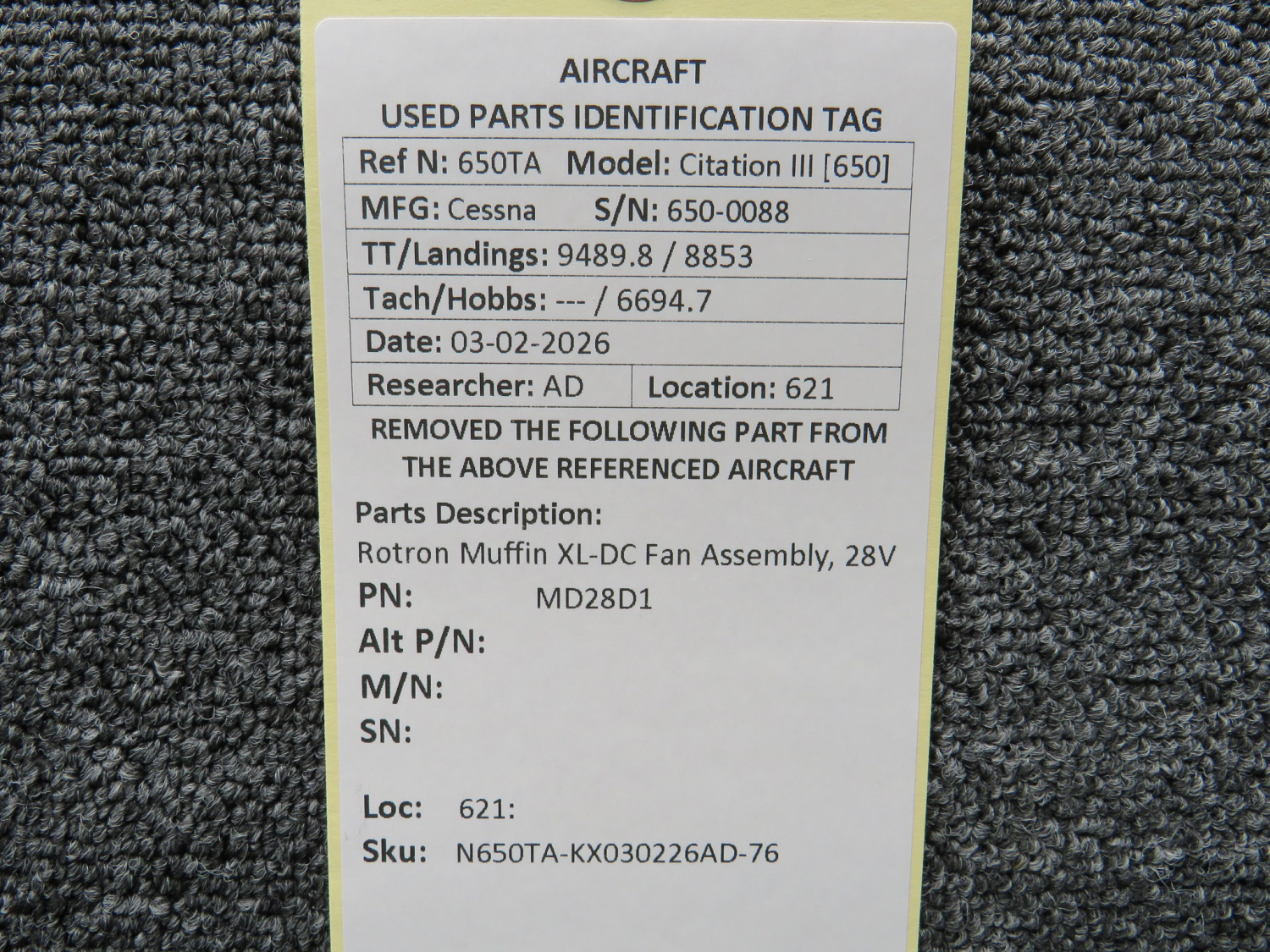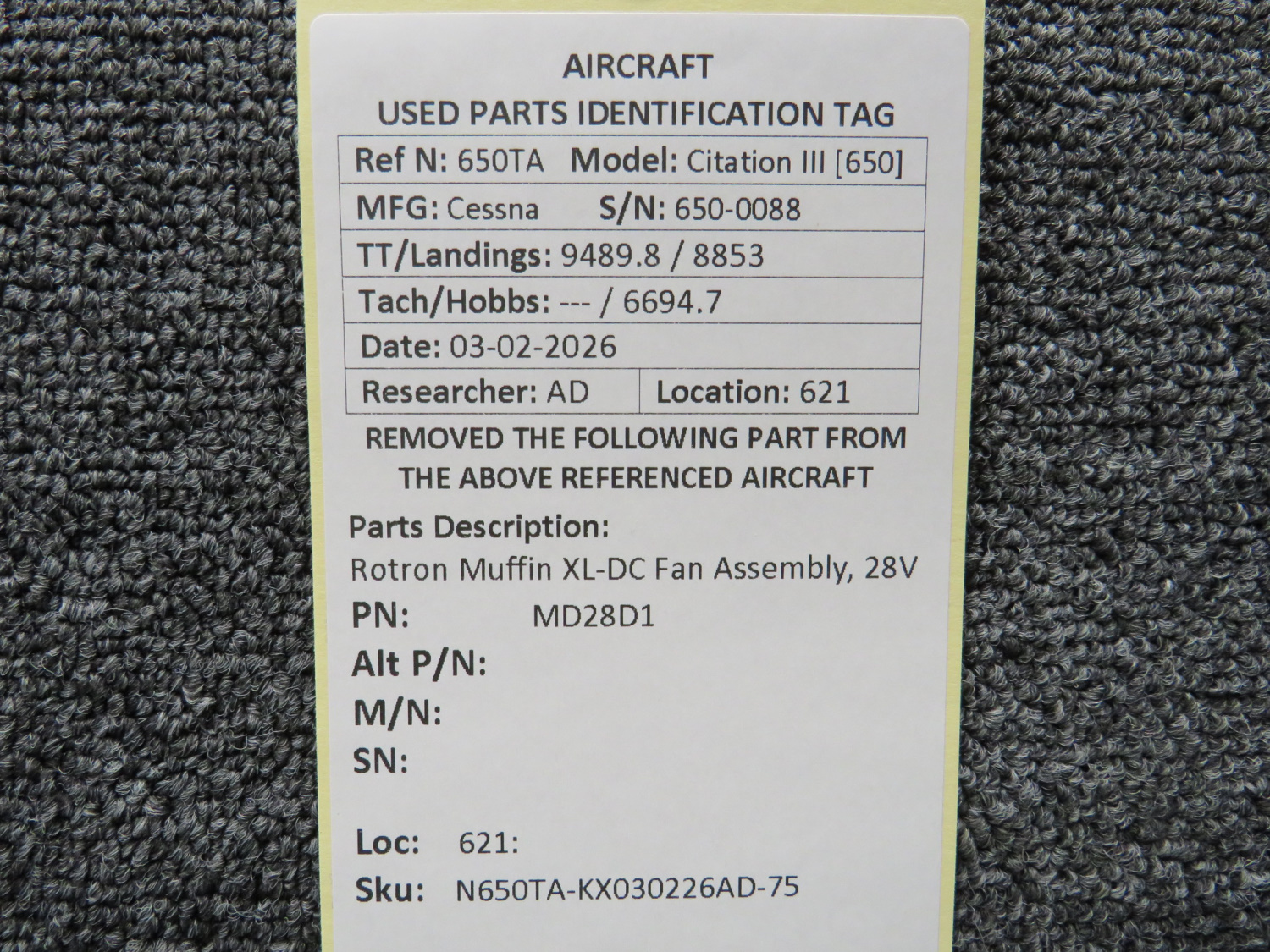 Every part is carefully inspected throughout our process and several times before it goes online. Most items are sold as-removed, just as they came off the aircraft. These parts are not functionally tested. What we do provide is clear photos, full traceability when available, pricing that reflects the as-removed condition, and a no-nonsense 90-day return window.