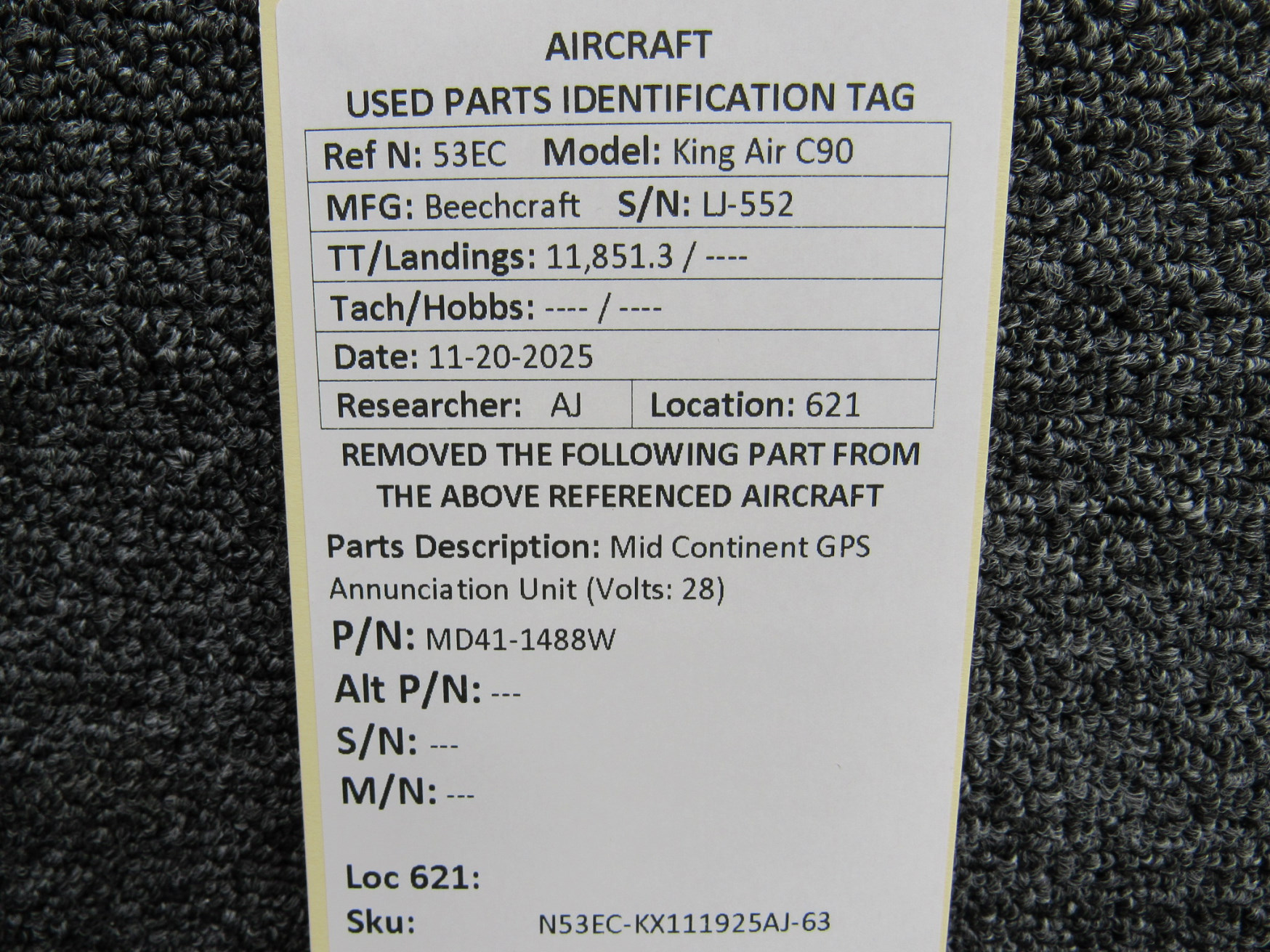 Unless specifically noted, most of our used airplane parts are sold in the condition they were removed, which means you should expect the usual signs of wear and tear.
