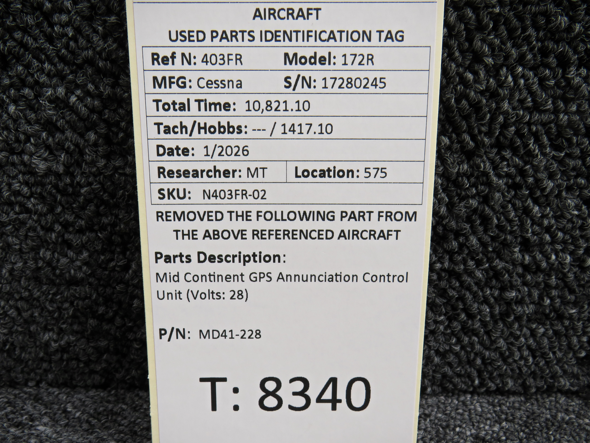Unless specifically noted, most of our used airplane parts are sold in the condition they were removed, which means you should expect the usual signs of wear and tear.