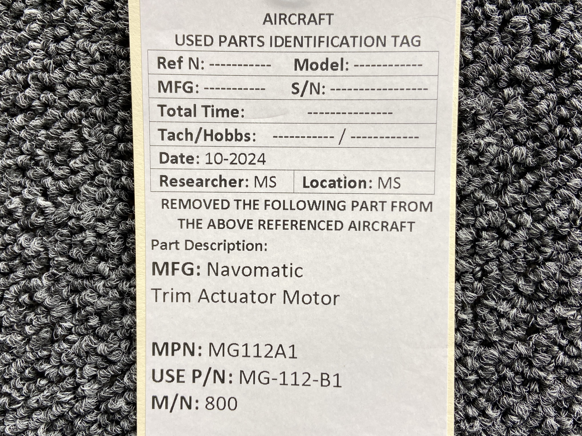 - Use Part Number: MG-112-B1