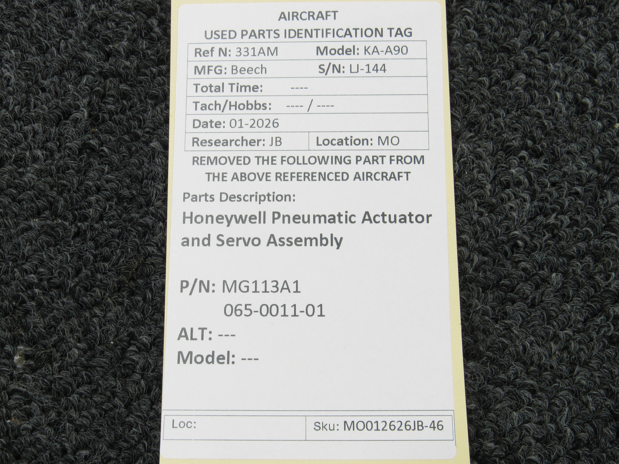Unless specifically noted, most of our used airplane parts are sold in the condition they were removed, which means you should expect the usual signs of wear and tear.