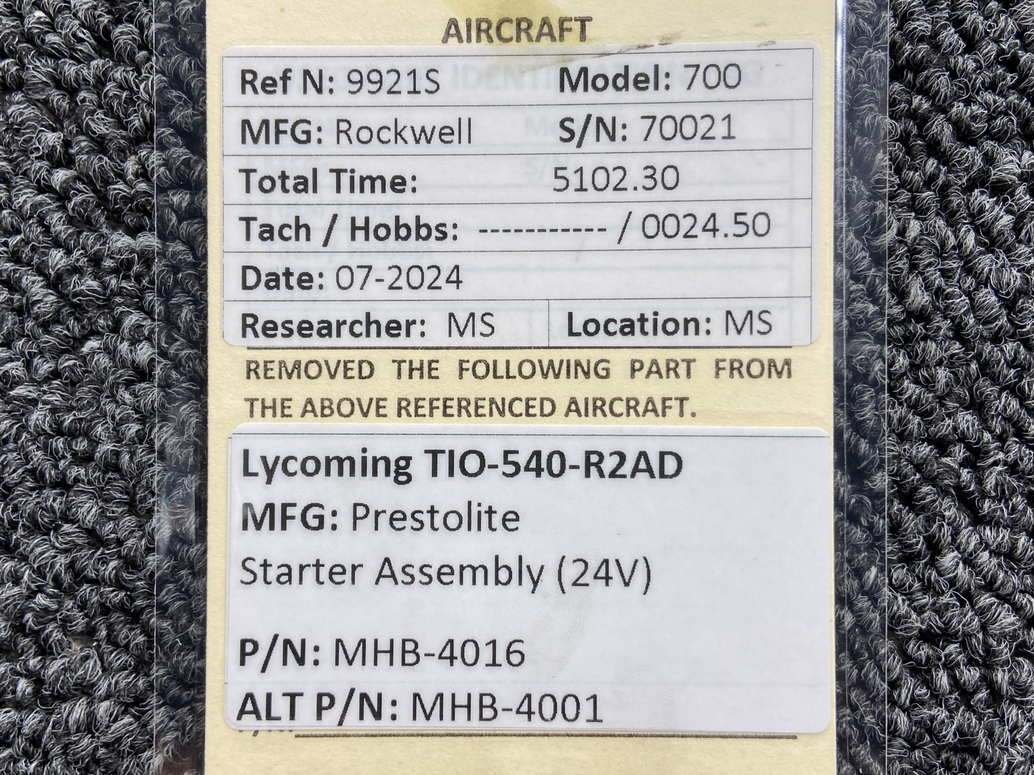 - Removed from Lycoming TIO-540-R2AD
