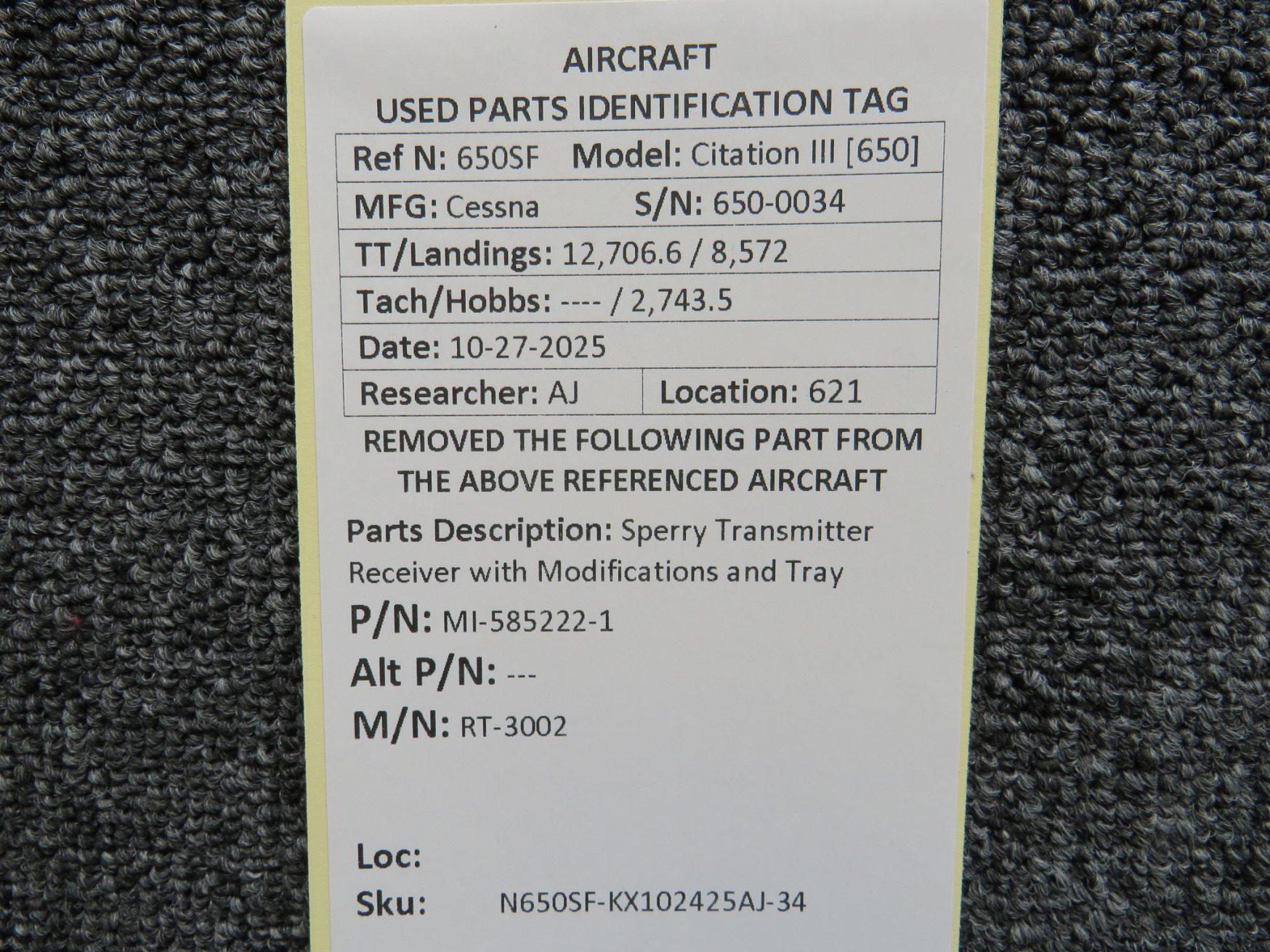 Unless specifically noted, most of our used airplane parts are sold in the condition they were removed, which means you should expect the usual signs of wear and tear.