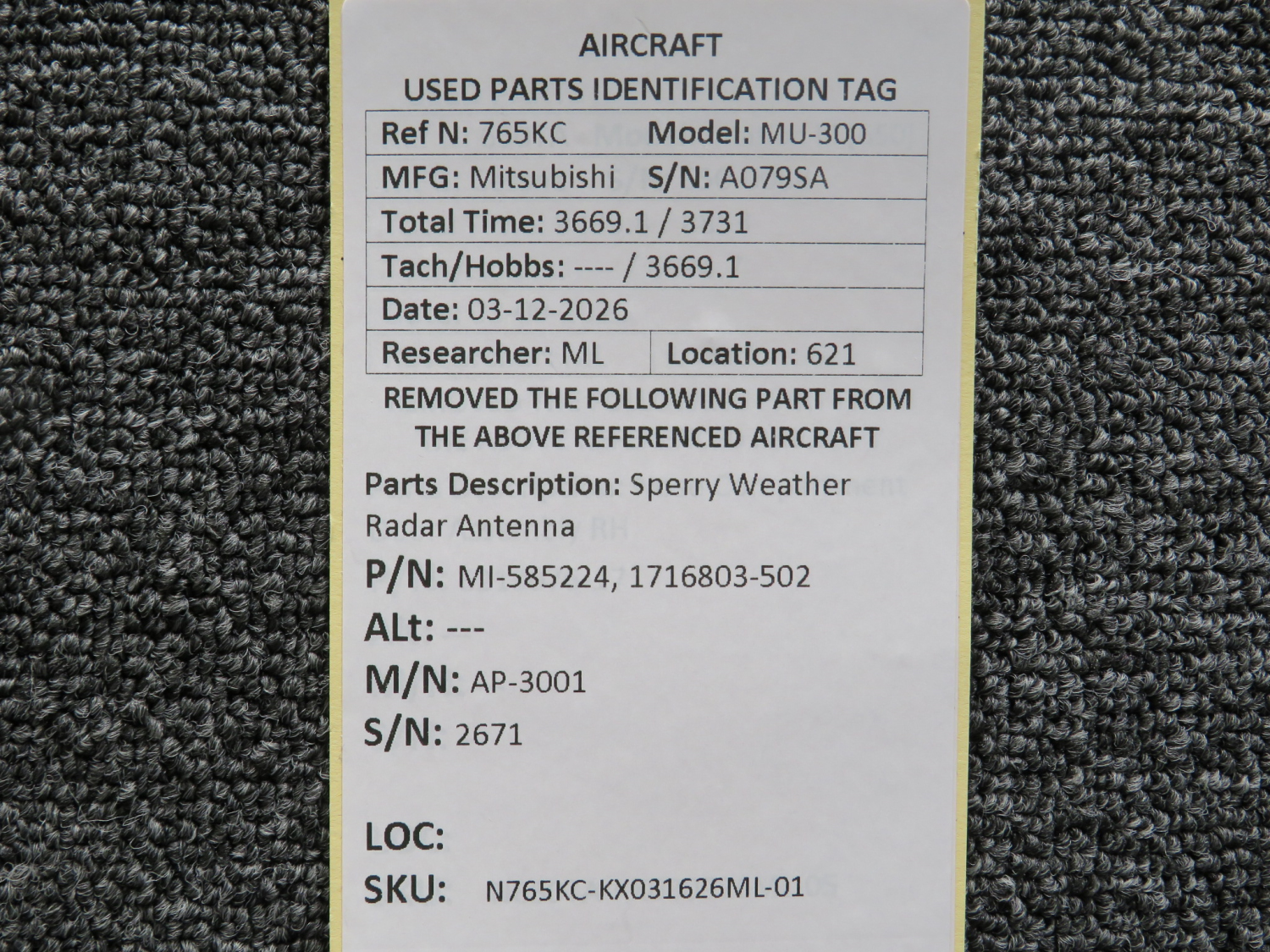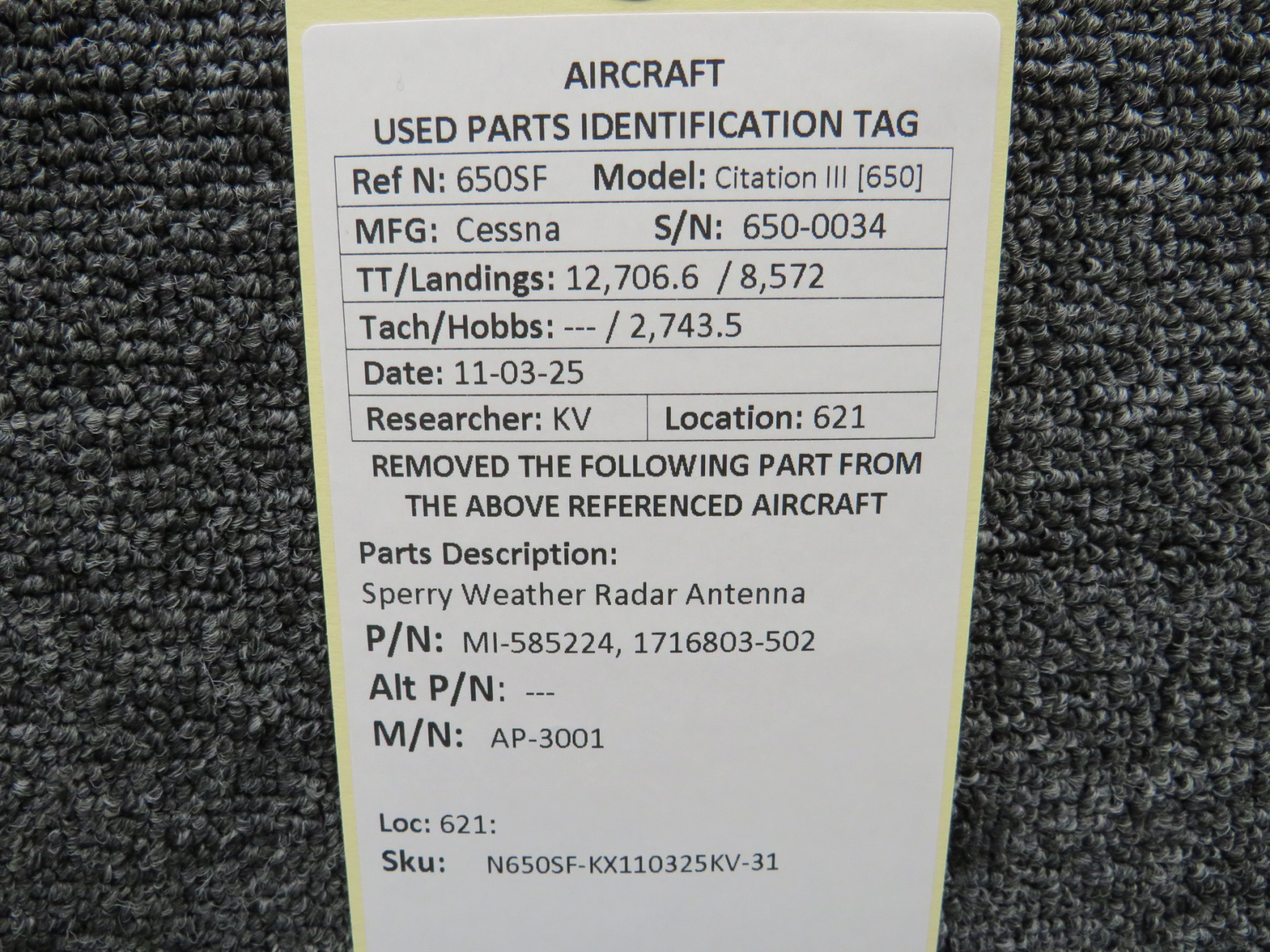 Every part is carefully inspected throughout our process and several times before it goes online. Most items are sold as-removed, just as they came off the aircraft. These parts are not functionally tested. What we do provide is clear photos, full traceability when available, pricing that reflects the as-removed condition, and a no-nonsense 90-day return window.