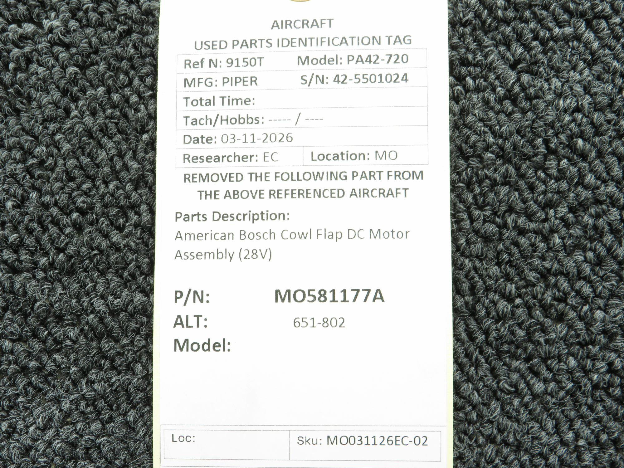 Every part is carefully inspected throughout our process and several times before it goes online. Most items are sold as-removed, just as they came off the aircraft. These parts are not functionally tested. What we do provide is clear photos, full traceability when available, pricing that reflects the as-removed condition, and a no-nonsense 90-day return window.