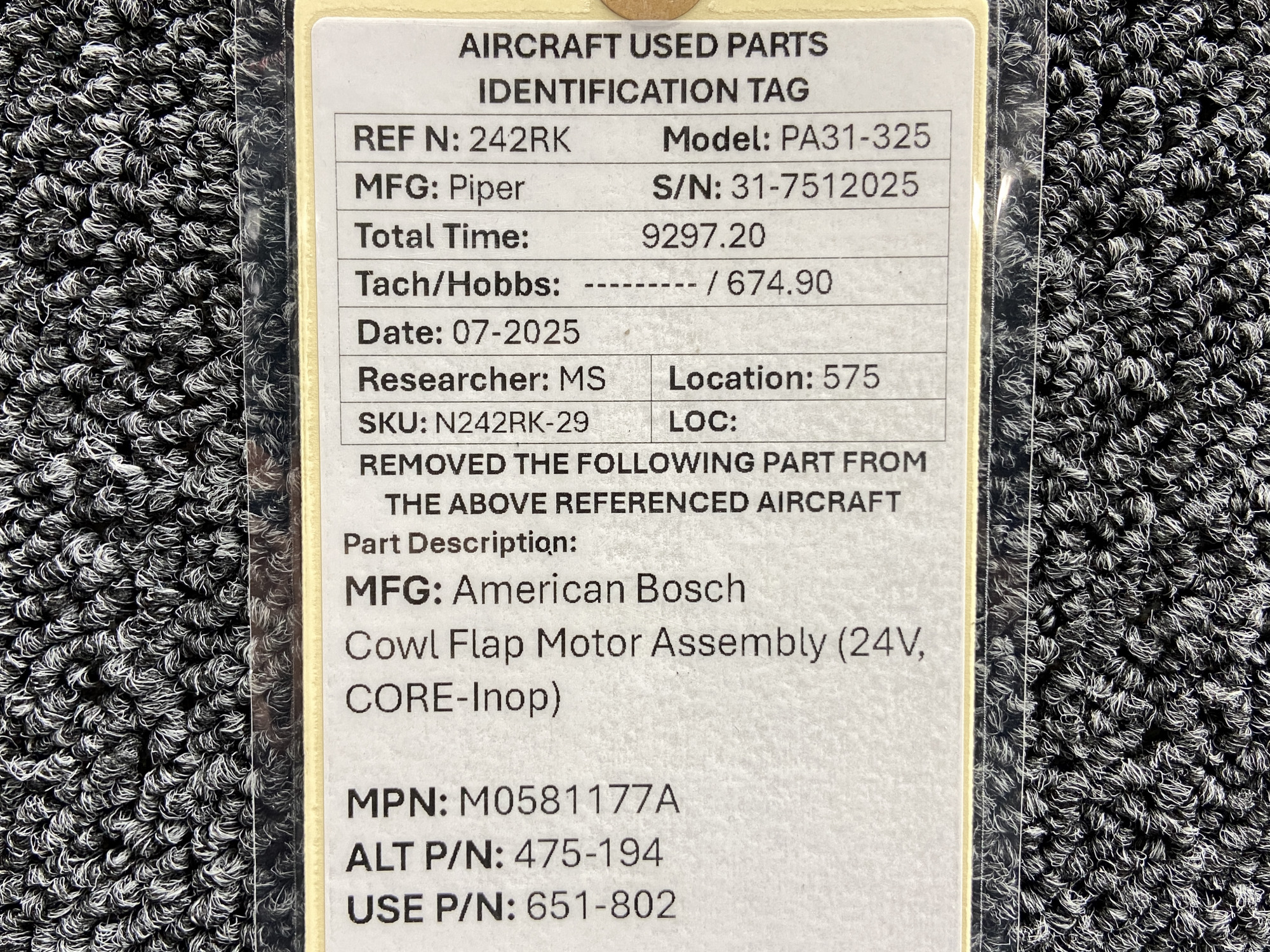 Part removed from aircraft in its original, unaltered state. Most of the inventory available from BAS Part Sales is in As-Removed condition. We removed it from the aircraft in working condition and expect it to pass inspection. As-Removed items come with our 90-day Money-Back Guarantee. Read More
