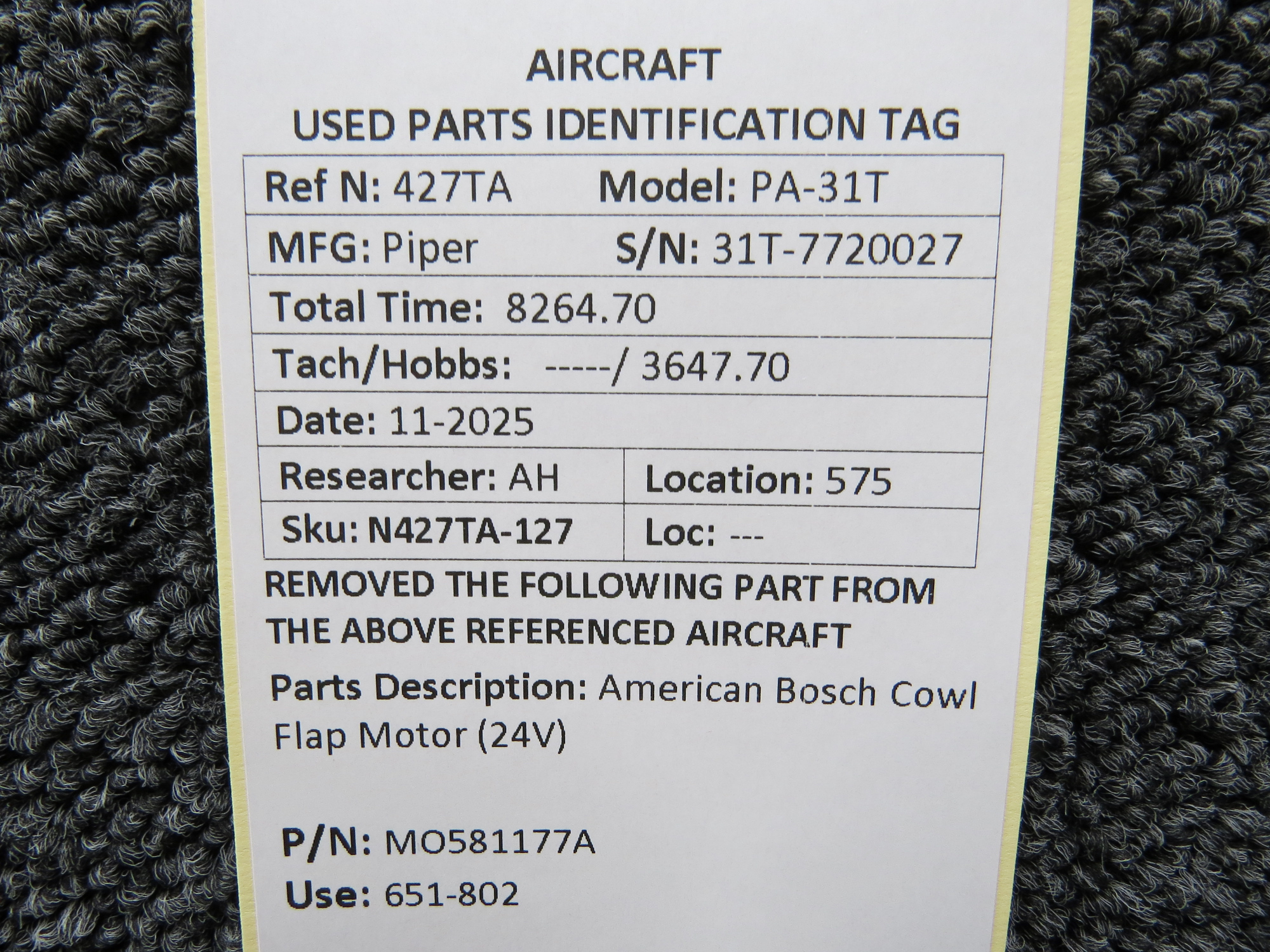 Unless specifically noted, most of our used airplane parts are sold in the condition they were removed, which means you should expect the usual signs of wear and tear.