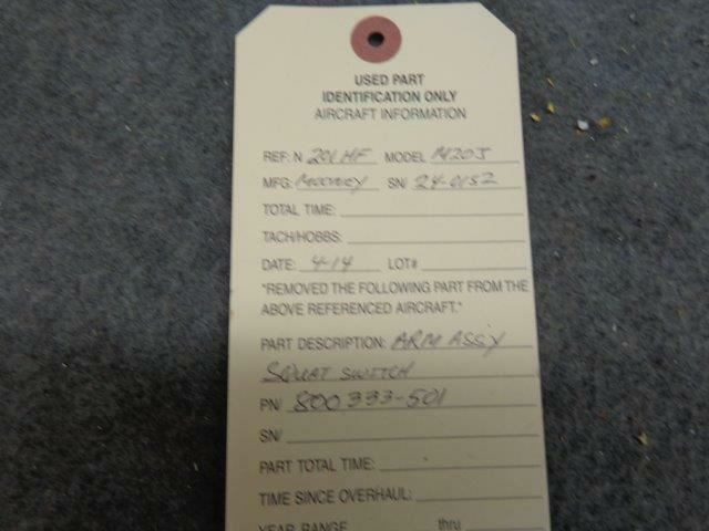 Mooney M20J Arm Assy. Squat Switch P/N 800333-501