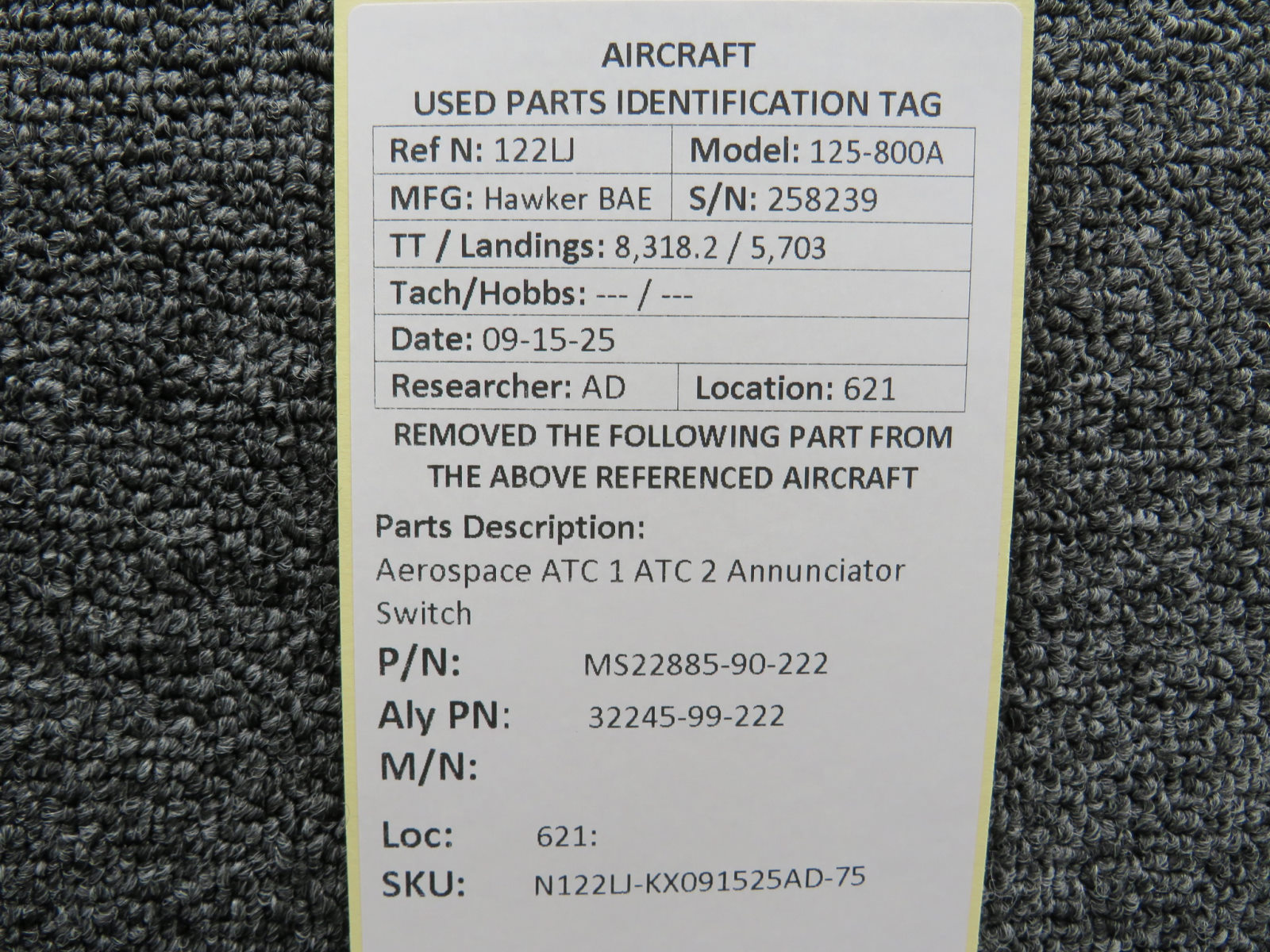 Unless specifically noted, most of our used airplane parts are sold in the condition they were removed, which means you should expect the usual signs of wear and tear.