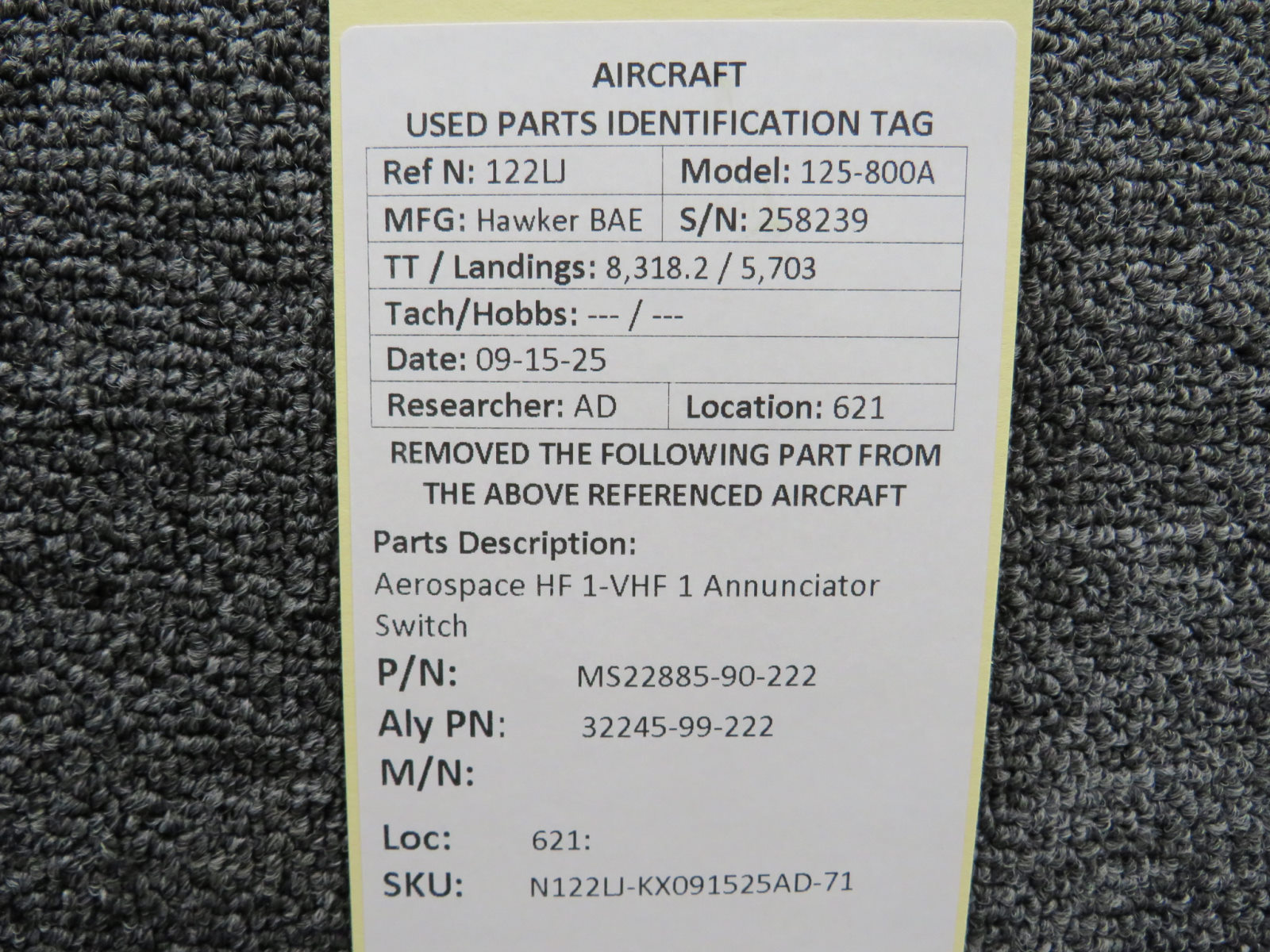 Unless specifically noted, most of our used airplane parts are sold in the condition they were removed, which means you should expect the usual signs of wear and tear.