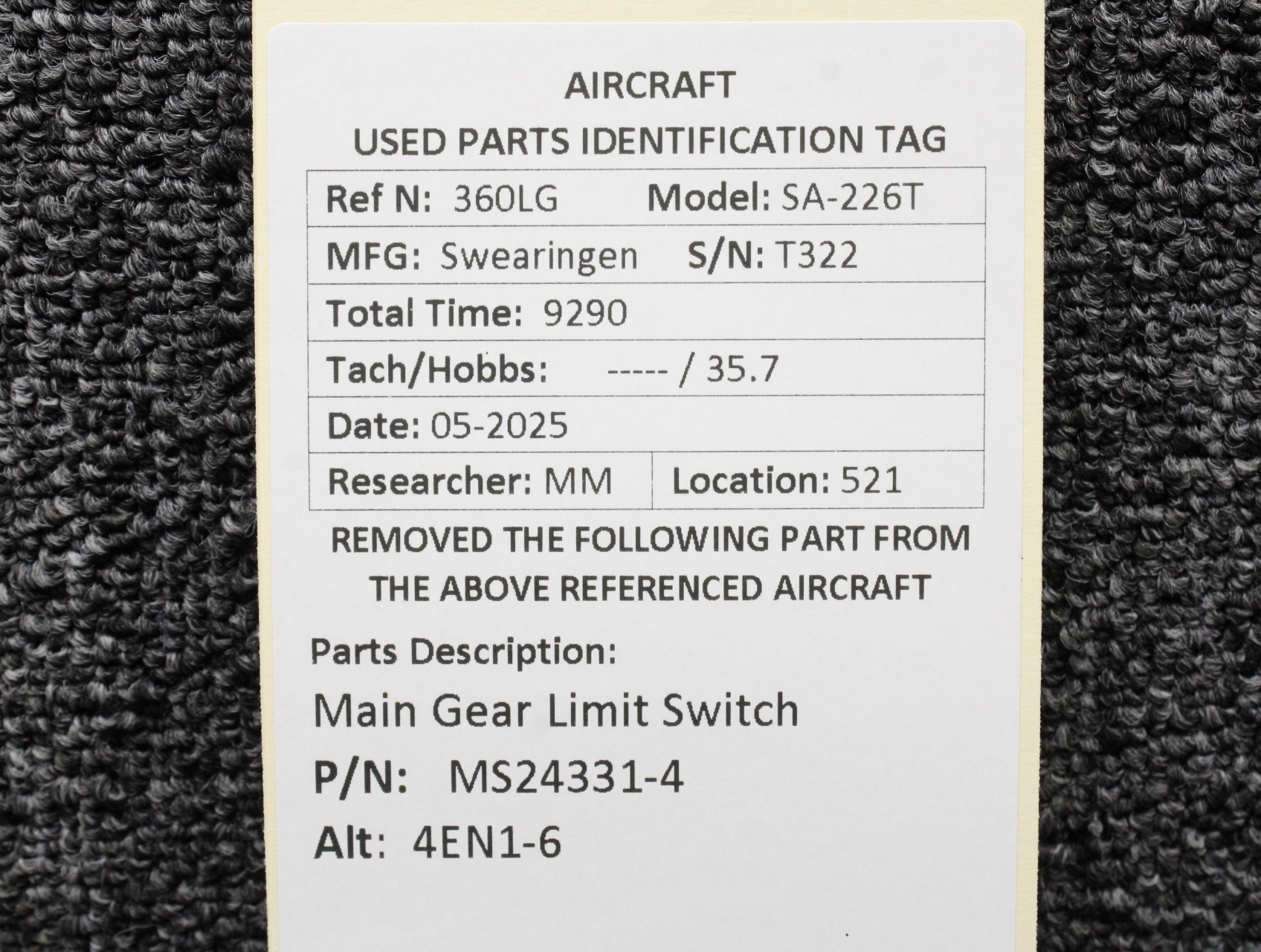 Unless specifically noted, most of our used airplane parts are sold in the condition they were removed, which means you should expect the usual signs of wear and tear.