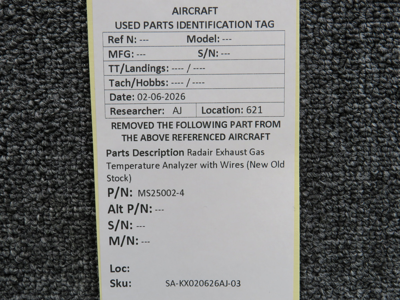 Every part is carefully inspected throughout our process and several times before it goes online. Most items are sold as-removed, just as they came off the aircraft. These parts are not functionally tested. What we do provide is clear photos, full traceability when available, pricing that reflects the as-removed condition, and a no-nonsense 90-day return window.
