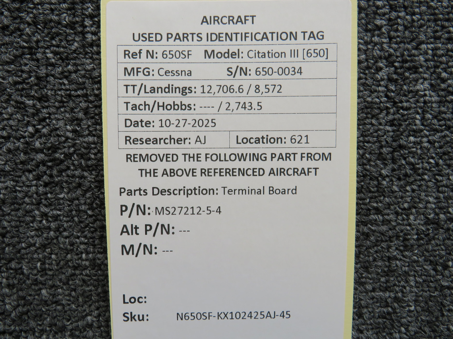 Unless specifically noted, most of our used airplane parts are sold in the condition they were removed, which means you should expect the usual signs of wear and tear.