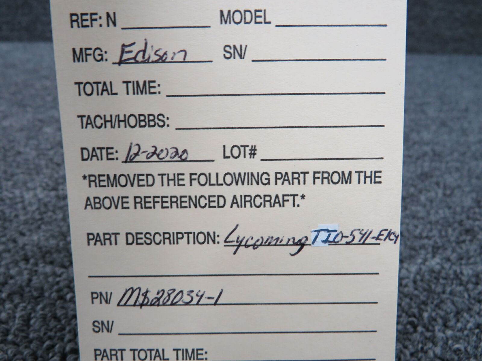 MS28034-1 Lycoming TIO-541-E1C4 Edison Oil Temperature Bulb