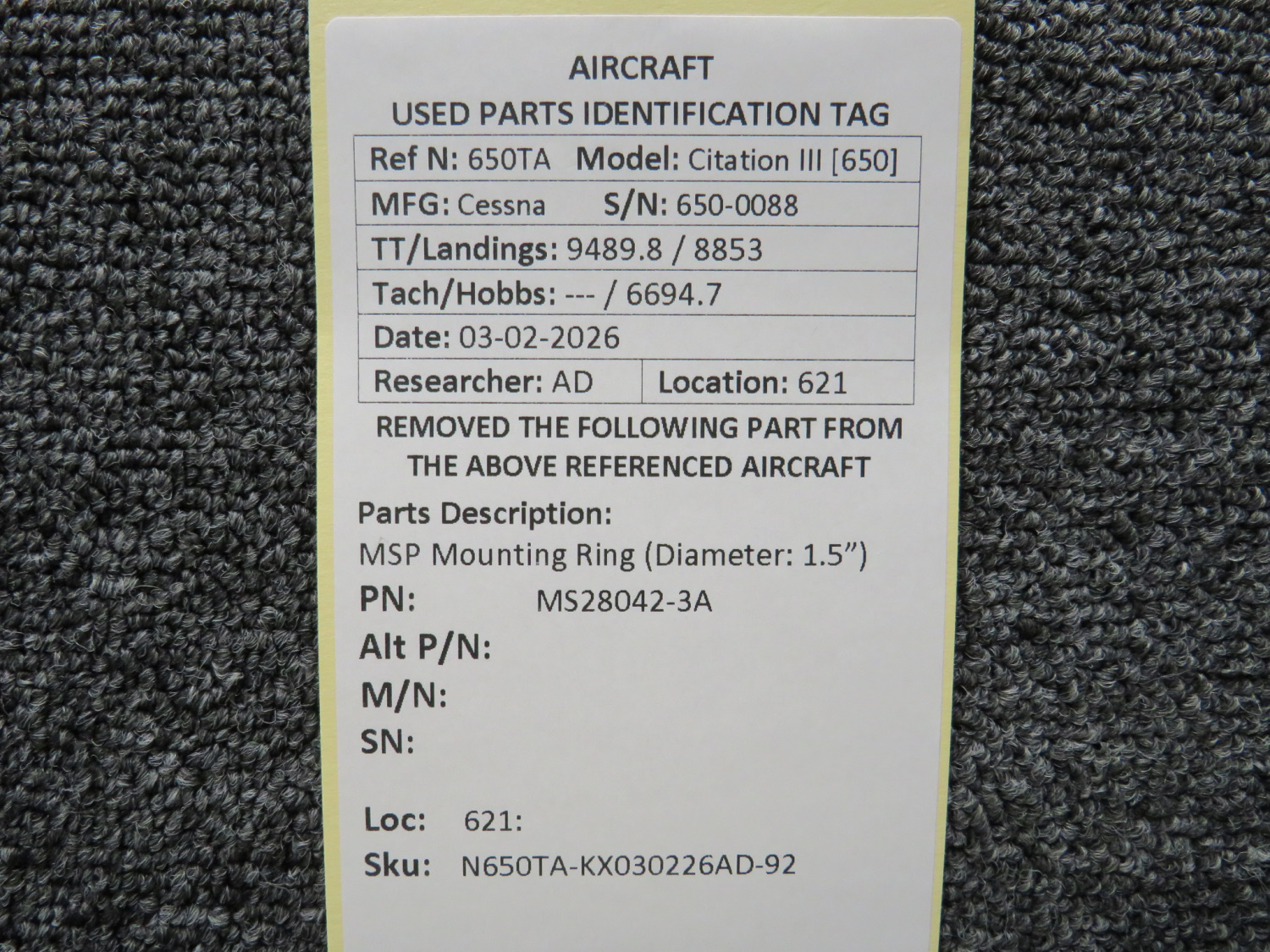 Every part is carefully inspected throughout our process and several times before it goes online. Most items are sold as-removed, just as they came off the aircraft. These parts are not functionally tested. What we do provide is clear photos, full traceability when available, pricing that reflects the as-removed condition, and a no-nonsense 90-day return window.