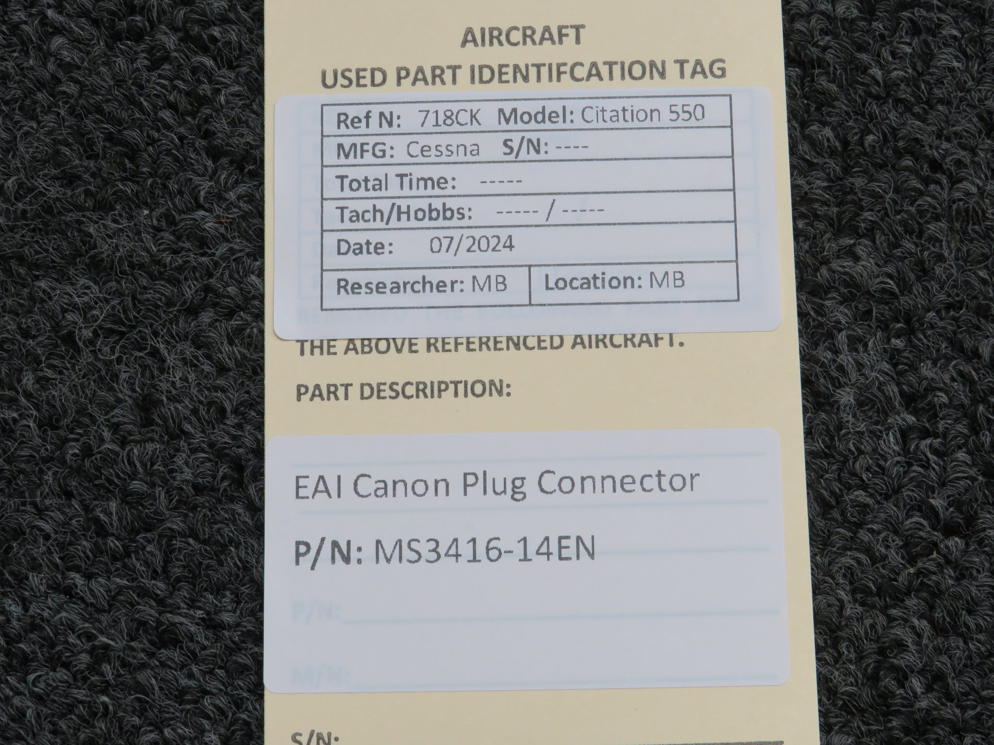 Attention International Buyers: We routinely export aircraft parts to destinations around the world. All import duties, taxes, and any other charges related to importing parts to your country are not included in the price of the item or shipping charges, these are 100% the responsibility of the buyer. Please check with your country's customs office to help determine what these additional costs will be prior to purchasing. We do not mark merchandise value below purchase value nor mark items as "gifts" as both U.S. and international law strictly prohibits this. We do not ship to forwarding shipping stations. A business or residential address is required for delivery.