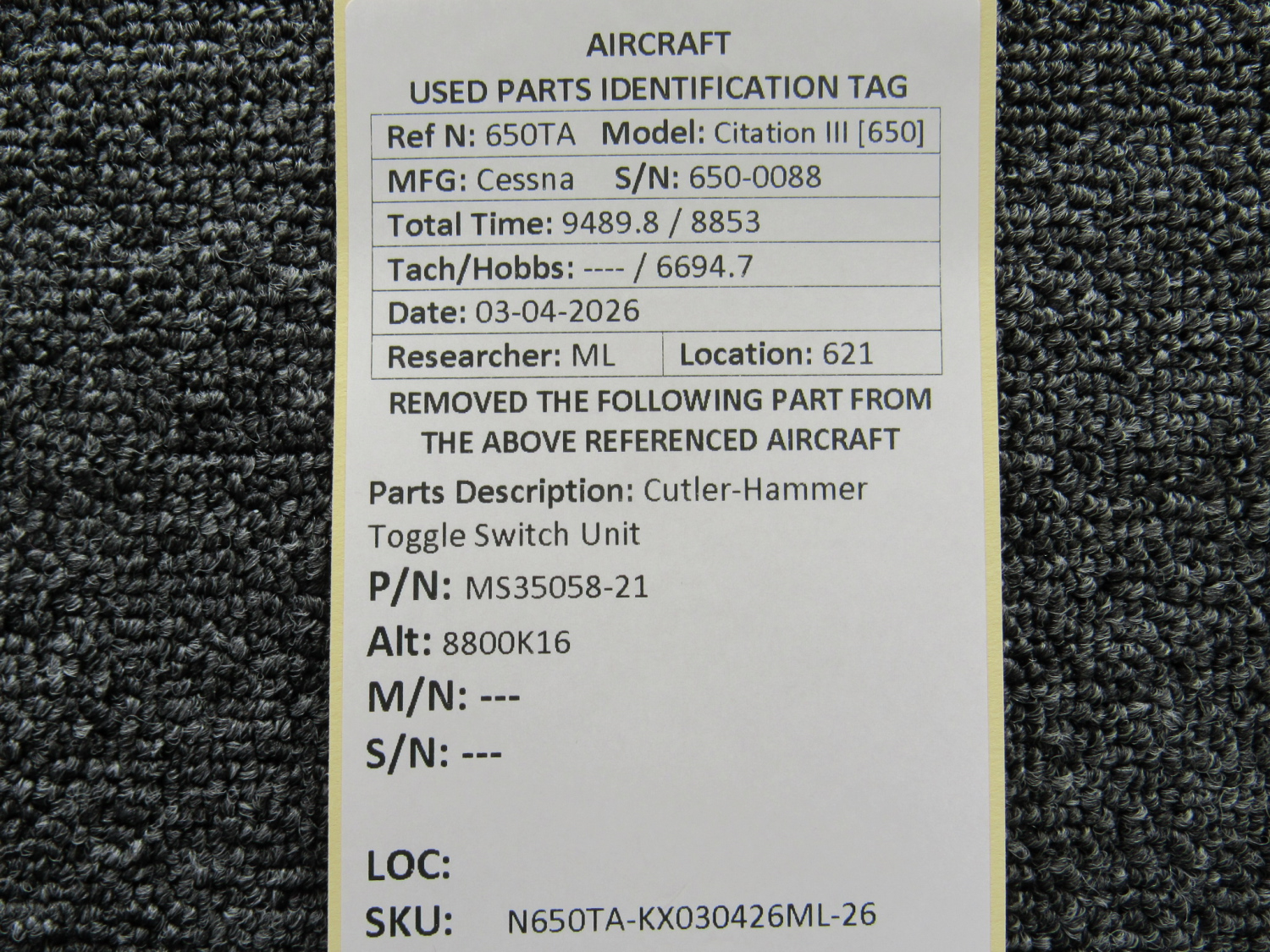 Every part is carefully inspected throughout our process and several times before it goes online. Most items are sold as-removed, just as they came off the aircraft. These parts are not functionally tested. What we do provide is clear photos, full traceability when available, pricing that reflects the as-removed condition, and a no-nonsense 90-day return window.