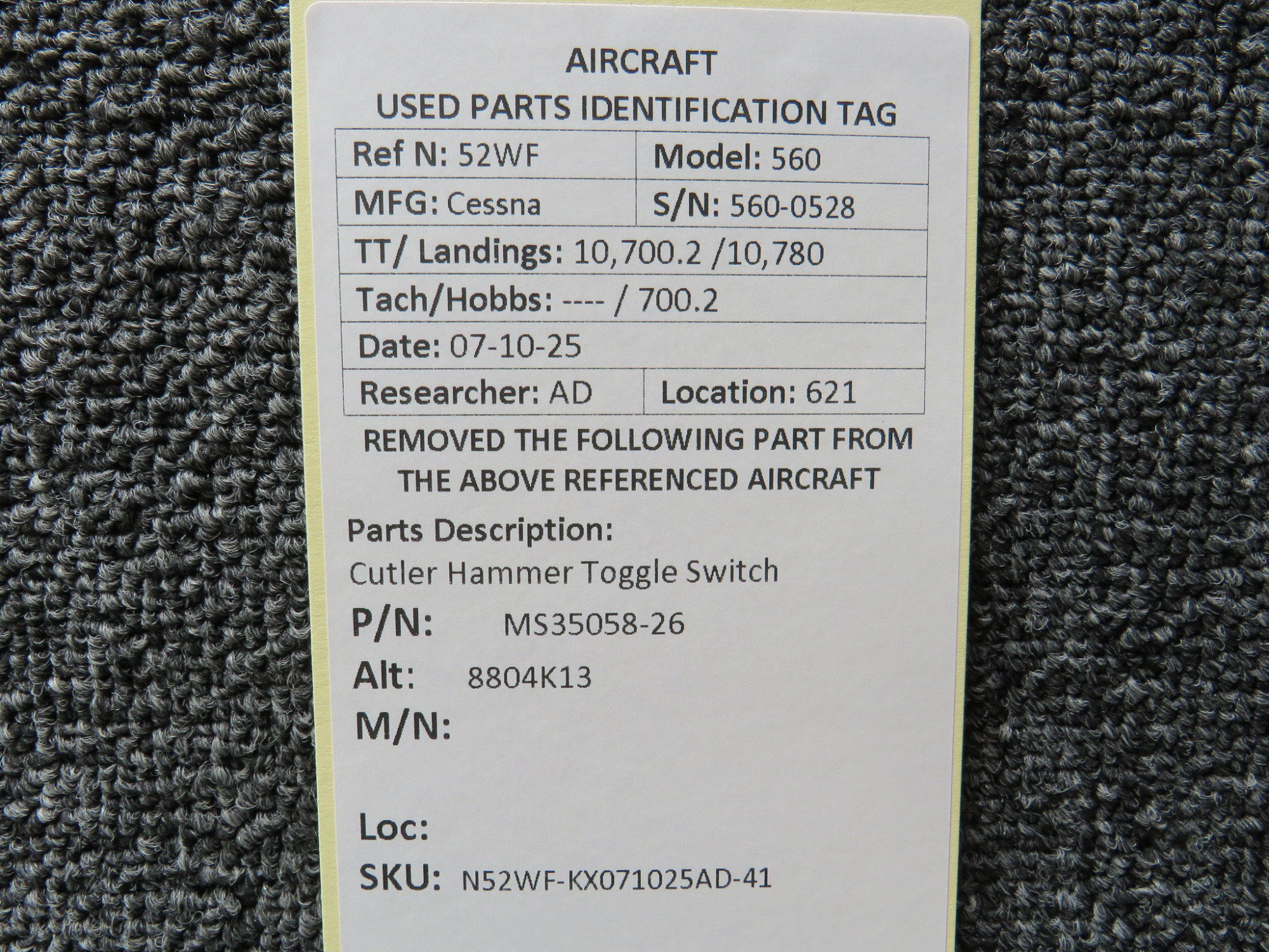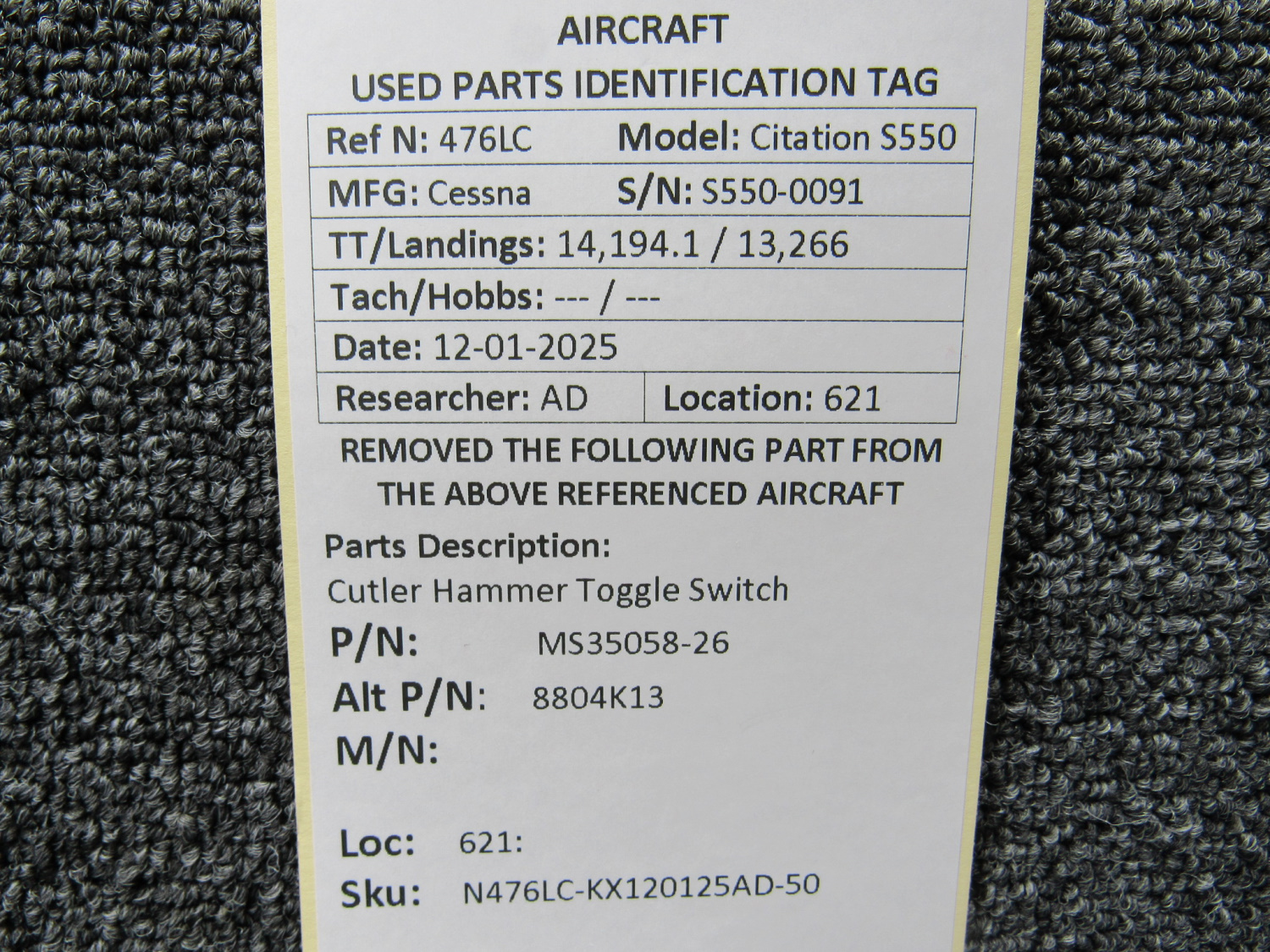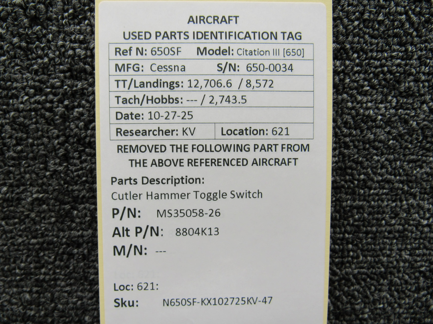 Unless specifically noted, most of our used airplane parts are sold in the condition they were removed, which means you should expect the usual signs of wear and tear.